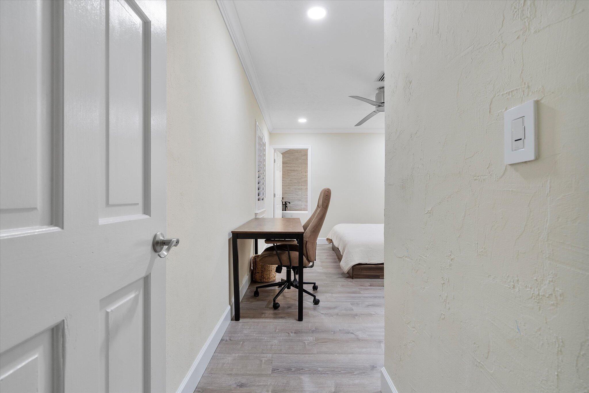 This beautiful home comes with a rare opportunity -- AN ASSUMABLE LOAN WITH LOW 3.125%. Just a short walk to downtown Hollywood and the Intracoastal, this beautifully updated home offers great curb appeal, a spacious layout, and flexible living space. Features include luxury vinyl plank flooring, fresh interior paint, and a chef's kitchen with Wolf gas stove, Sub-Zero fridge, large island, and generous storage. Both bathrooms have been fully renovated with high-end finishes -- including glass-enclosed shower, floor-to-ceiling tile, dual vanities, and a stunning freestanding tub in the primary suite. French doors lead to a screened porch. The converted garage serves as a third bedroom, office, or den. The fenced backyard features new turf, a custom playground, and paver driveway.
