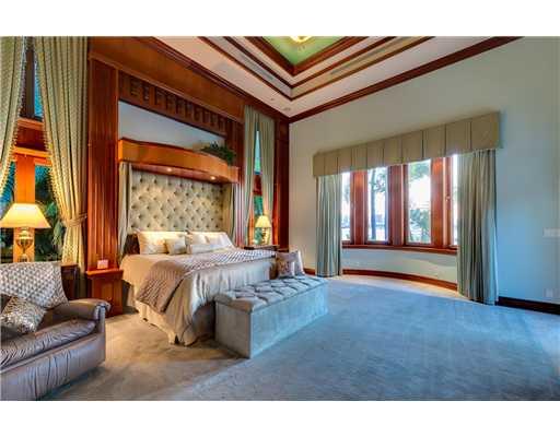 Best location, best views, best built home on exclusive gated Hibiscus Island. This beautiful home has spectacular views of the bay and downtown. The interior has volume ceilings, marble floors, mahogany wood details and built-ins that are unmatched. The recently built custom home has all the modern conveniences with, high end gourmet kitchen, granite, main level master, and 3 car garage. Pie shaped property has over 125 feet on the water, docks with no bridges to ocean, boat lifts, free form pool.