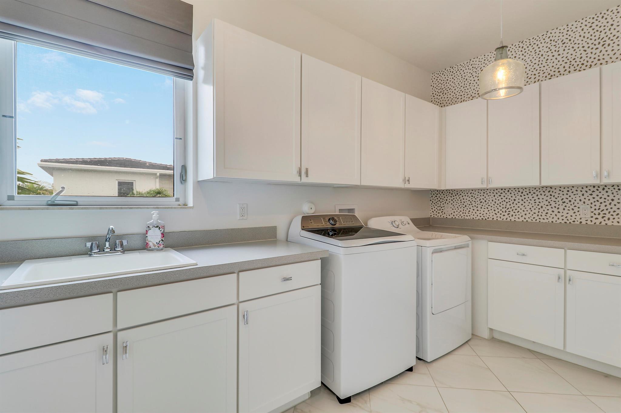 This stunning move-in ready home features porcelain floors downstairs, vinyl plank floors upstairs, custom wallpaper, designer paint, light fixtures, wood slat panels, and window treatments. The gourmet kitchen offers granite countertops, high-end appliances, and a built-in refrigerator. A stylish lounge with wet bar has replaced the downstairs office--perfect for entertaining.Upstairs, the owner's suite includes 2 walk-in closets, a spa-style bathroom and a private balcony. There's also 3 additional bedrooms, plus a home gym and a 5th bedroom, currently used as an office.Enjoy a private outdoor oasis with pool, hot tub, and summer kitchen. A 3-car garage offers ample storage, while security cameras and keypads provide peace of mind.Close to the I-95 and the Turnpike, 20 mins to PBI.
