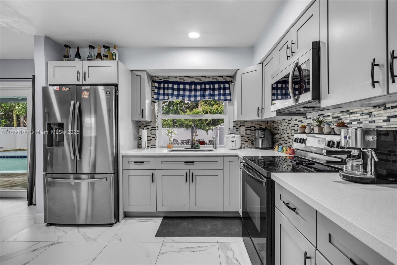 Remodeled property in the heart of Miramar! This beautiful home features a brand-new modern kitchen, elegant white flooring, and impact windows for added safety and energy efficiency. It also includes an extra room with a private entrance—perfect for income potential or guest use. The outdoor area is ideal for entertaining, with a sparkling pool, paved patio, and stylish metal fencing offering both privacy and charm. A great opportunity for living or investment!