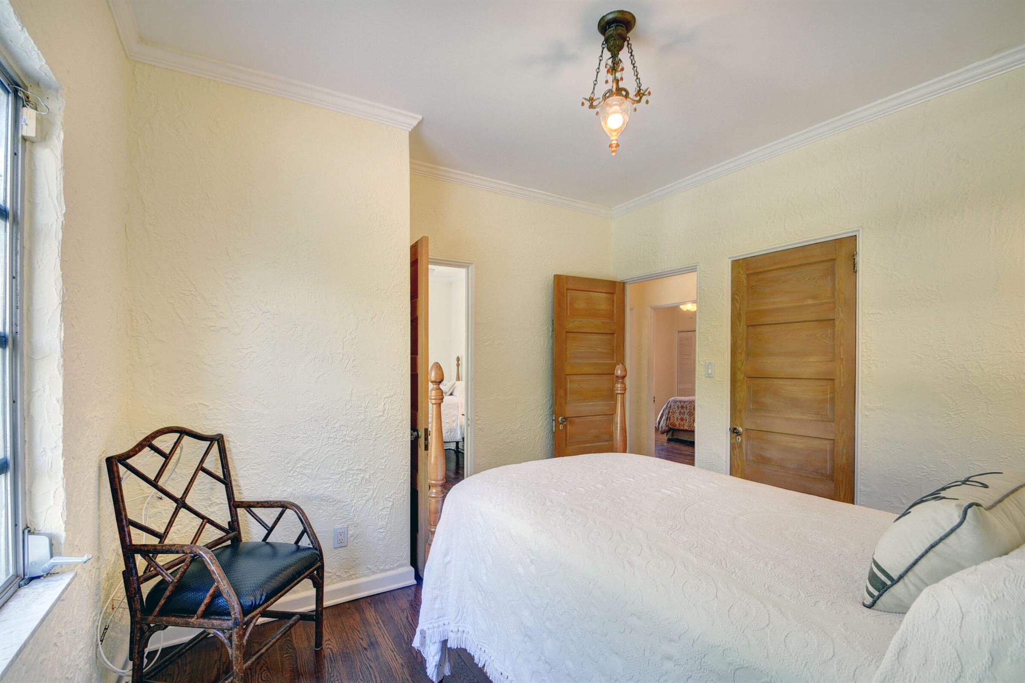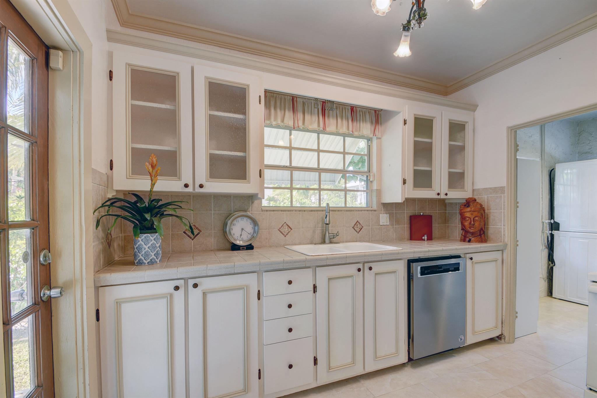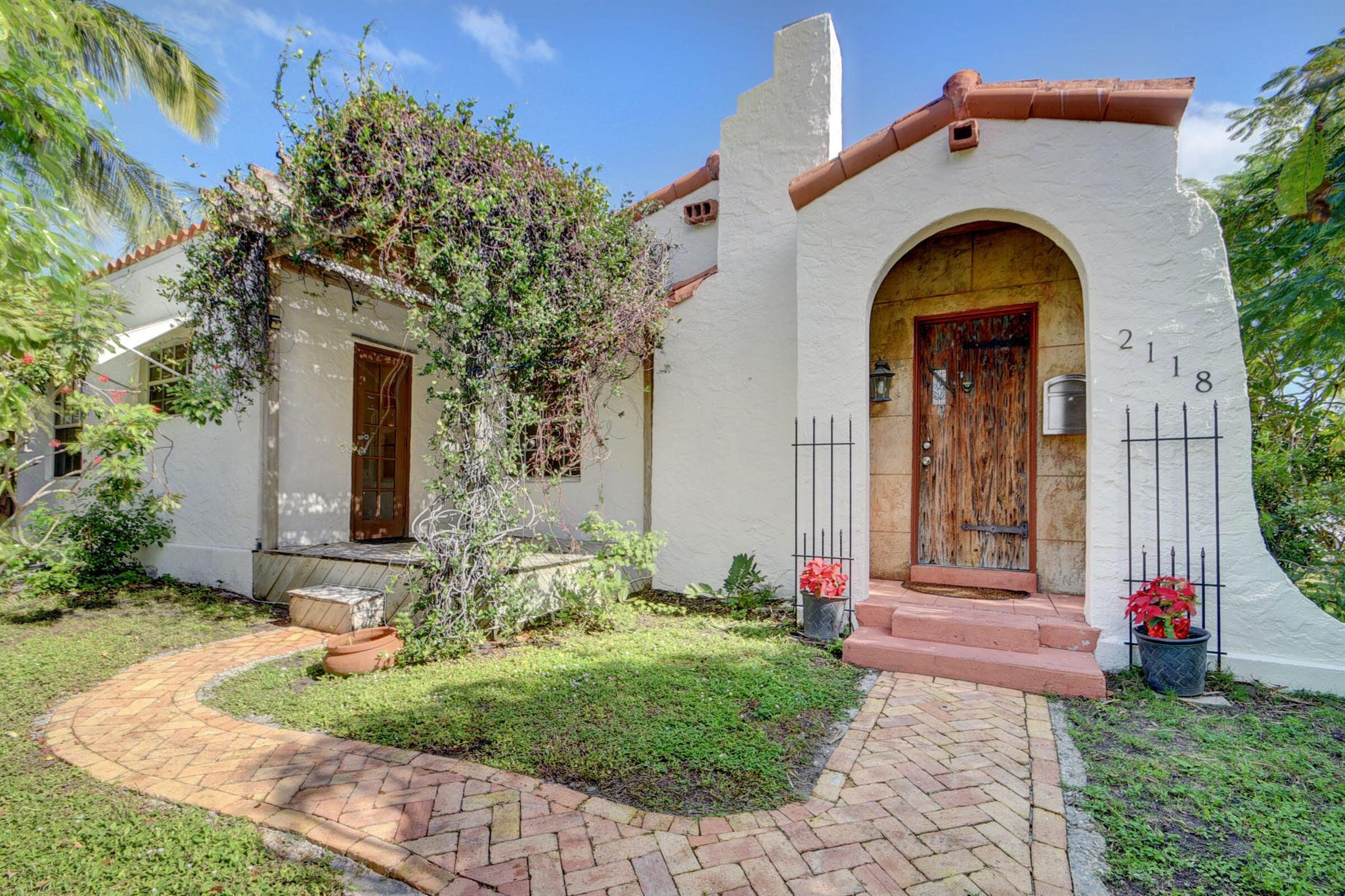 1925 Spanish Mission home built by Hansell Hall, Flamingo Park's premiere builder. 3BR/1BA with SUNROOM & detached 1 car garage. Picture frame hardwood floors in the living/dining/bedrooms & tile in the kitchen/sunroom,/bathroom & laundry room. Kitchen cabinetry w/ seeded glass doors & tile counter tops. Just outside the kitchen is an elevated deck and pergola for private outdoor dining. This home has a wood burning fireplace, many period light fixtures & architectural details throughout. In the backyard there is a large pool and built in spa w/ fenced yard & outside shower. New roof & central air-conditioning in 2022. The detached hollow tile garage, measures 18x10 & is perfect for future expansion & possibilities. COME SEE IT TODAY!