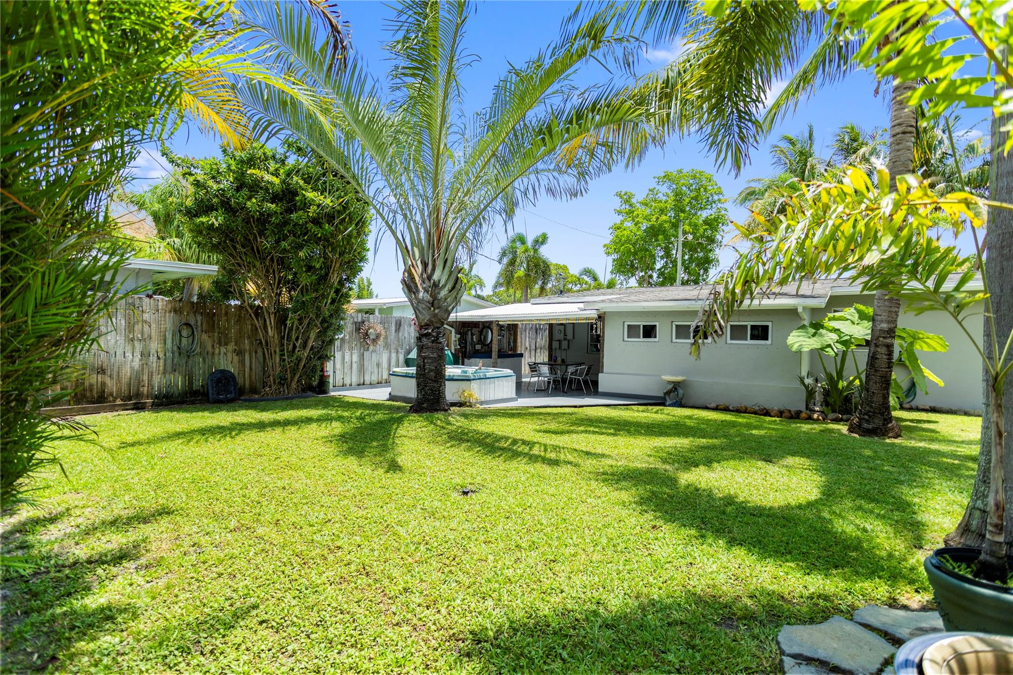 This cute 2 bedroom, 1 bath home has a screened front porch, nice living room with wood flooring, light and bright kitchen, spacious bedrooms, cozy family room leads to covered back patio that is great for entertaining and overlooks huge fenced back yard with room for a pool. Single garage, 2 driveways, 2nd covered area has a double gate for storing an RV or boat. Cool off in the above ground small wading pool (not heated). Central air and roof only 8 years old. Shutters for all windows and doors. What an amazing location with a short distance to the beach, restaurants and Pompano Beach Park with the renovated amphitheater, olympic size pool, exercise paths, clay tennis courts, pickleball courts, softball fields and volleyball courts.