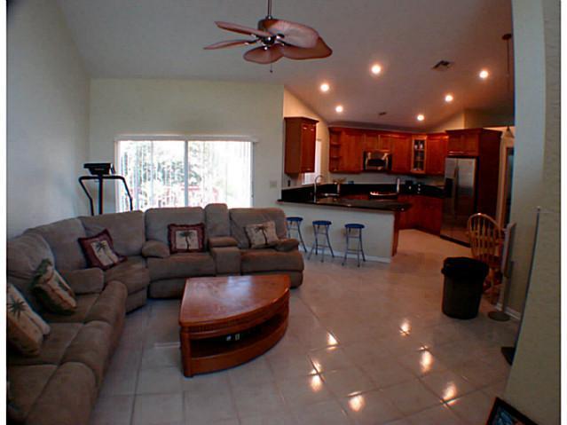 Amazing home in a golf community with an open floorplan conducive for entertaining. Soaring ceilings and a dramatic entry gives the sense of spaciousness and prestige. Equipped with a new kitchen boasting Granite Countertops, Breakfast Bar, Solid Wood Ca binetry, Stainless Steel Appliances, and open to the family room. Step outside to a covered lanai and lush tropical landscaping. Priced to Sell so don't miss your chance to own your home in highly desirable Oak Knoll.