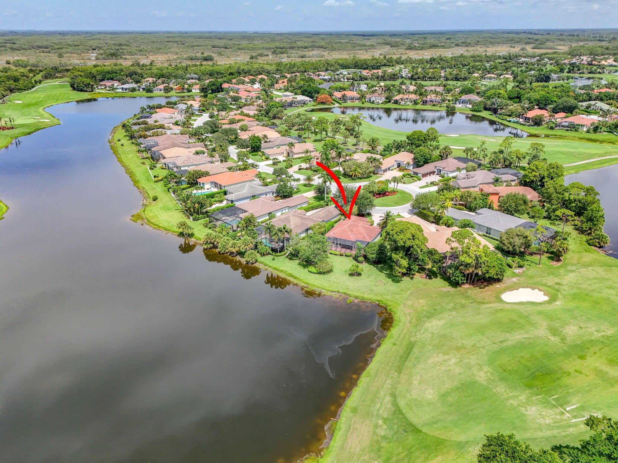 Welcome to Your Lakefront Golf Course RetreatStep into this beautifully maintained home and be captivated by the panoramic views of the lake and the renowned 18-hole Arthur Hills Championship golf course. Situated on a quiet cul-de-sac, this residence offers a serene and private setting, enhanced by elegant porcelain tile and rich wood flooring. Both the primary and guest bedroom feature en suite bathrooms. Double doors lead to a spacious office, complete with built-ins, ideal for a home workspace.Enjoy the stunning scenery from the expansive screened patio, perfect for relaxing or entertaining, and ample backyard space ready for a custom pool.While private club membership is available to enhance your lifestyle, it is not mandatory.