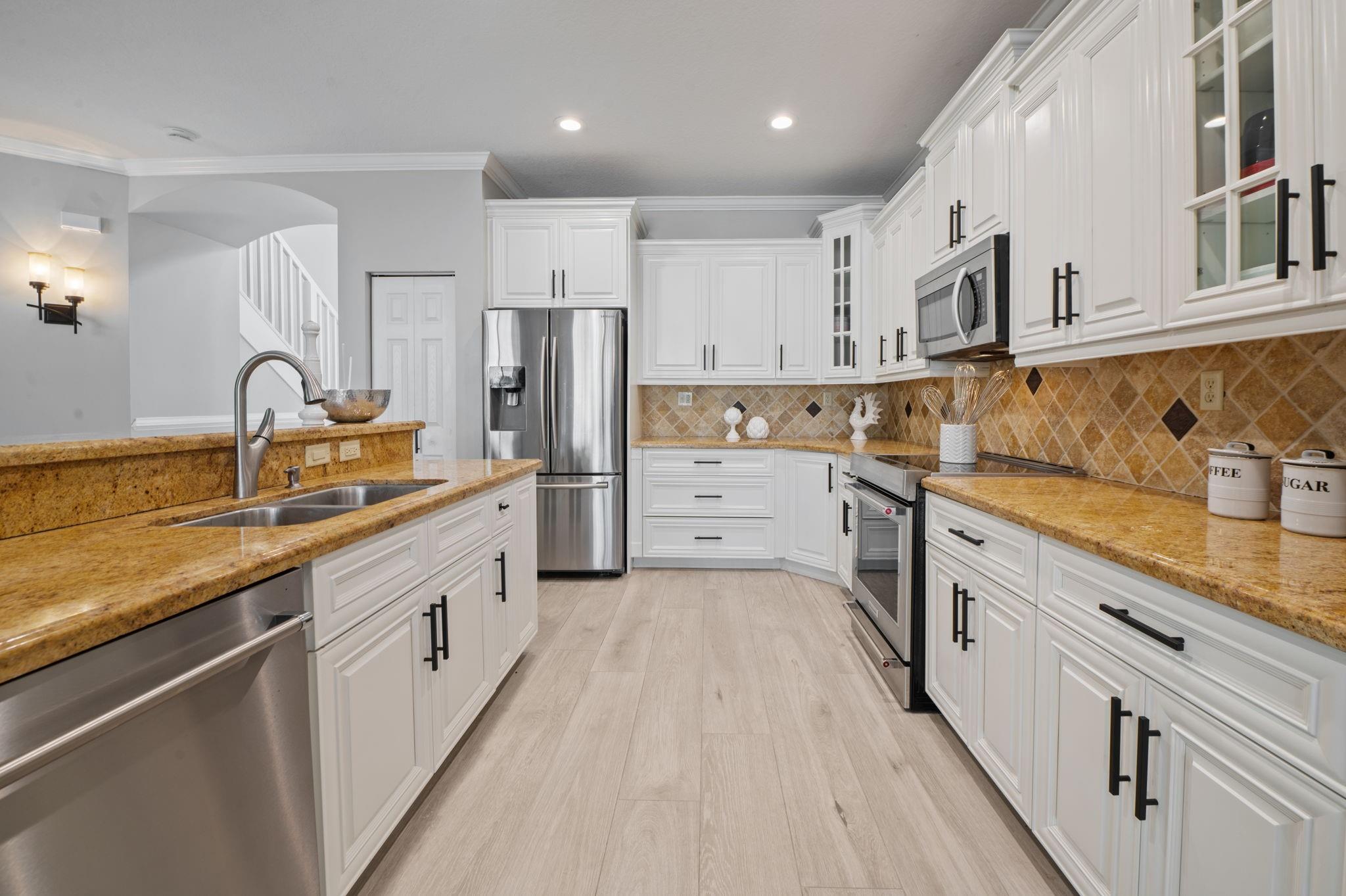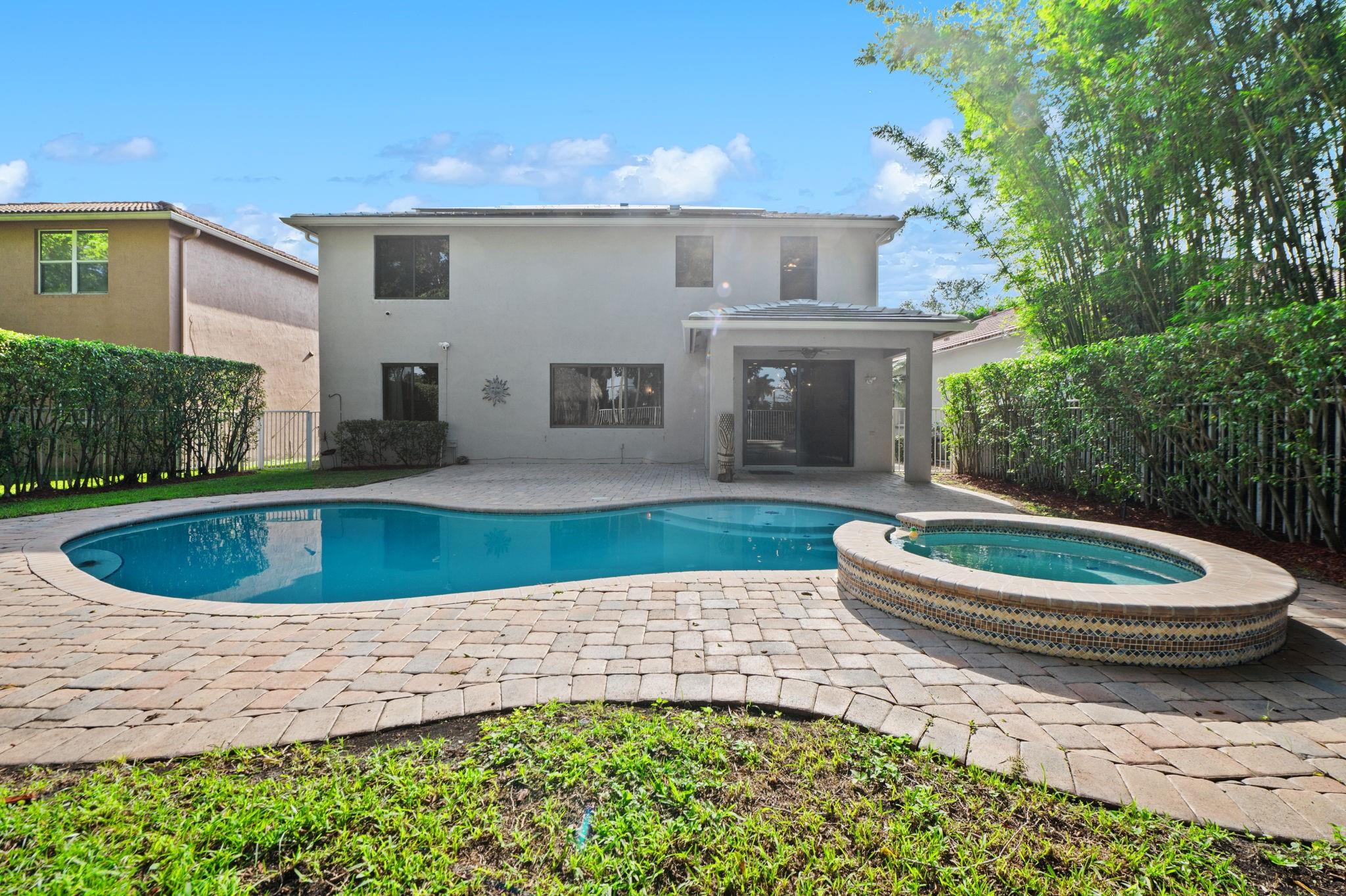 ***NEW ROOF, NEW GUTTERS AND NEW IMPACT WINDOWS & DOORS!!*** Welcome to this stunning 5 Bedroom/4Bath updated home perfectly designed for modern living. The thoughtful layout includes a convenient bedroom and full bath on the first floor ideal for guests. Updated kitchen equipped with high-end Kitchen-Aid appliances, new induction range/oven, granite counters & freshly painted kitchen cabinets add a modern flare. Enjoy an outdoor oasis that features an open heated pool & spa, new pool pump, paver patio & a Tiki Hut that's perfect for entertaining. A Volt Solar system for low power bills, new garage door opener with Amazon access open/lose, exterior camera system and ADT security. HOA includes fiber internet, cable tv, clubhouse with gym, 2 pools, sports courts. Bus service to schools.