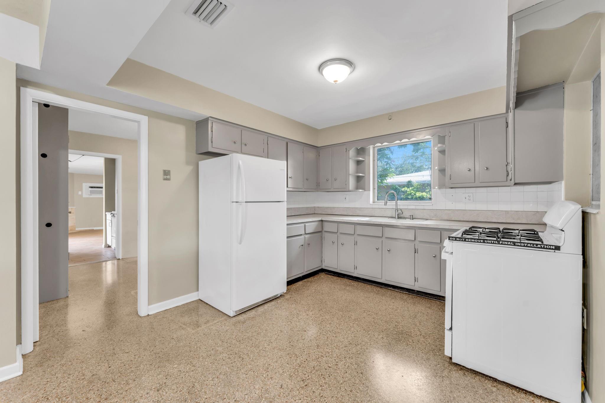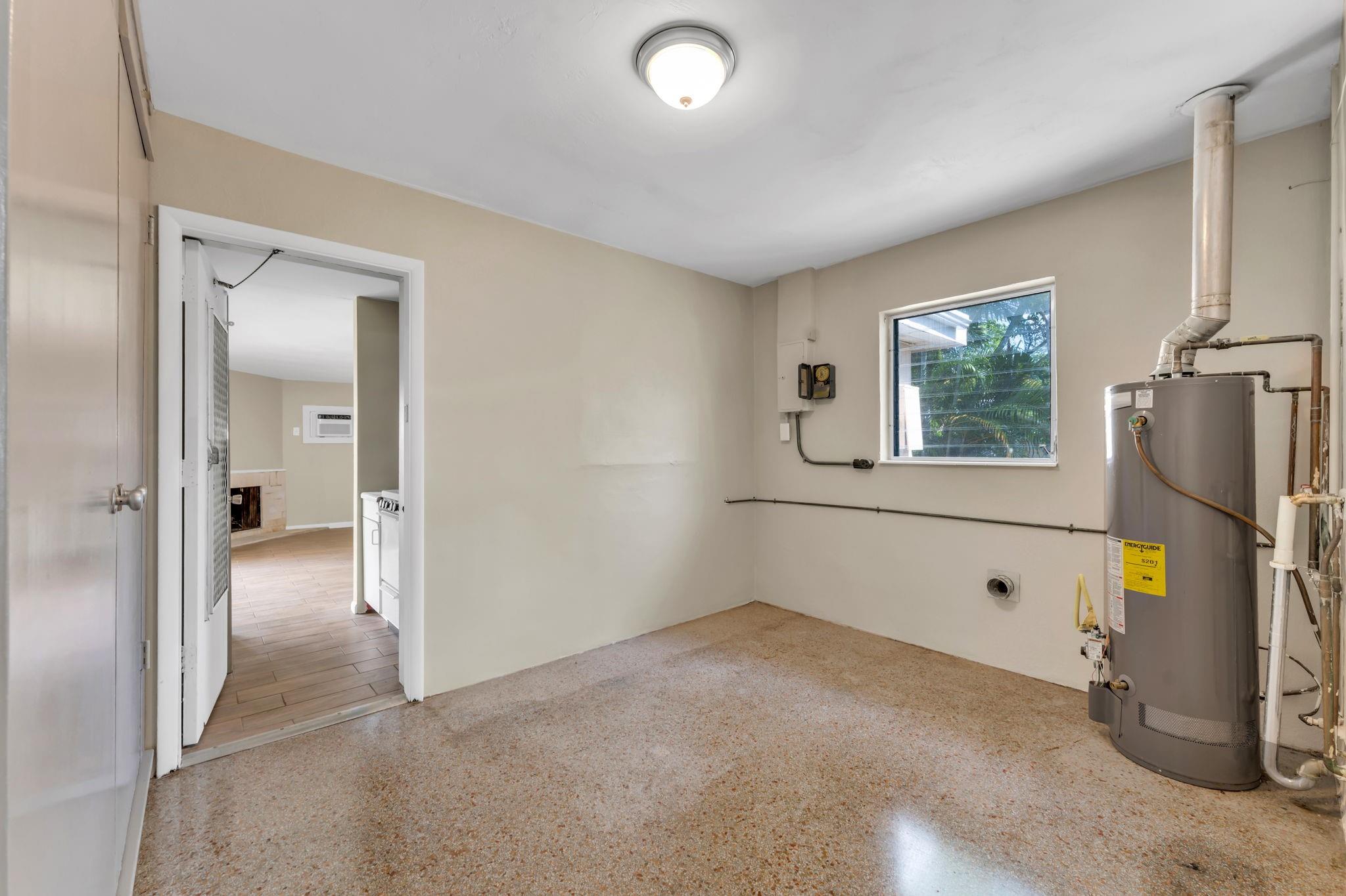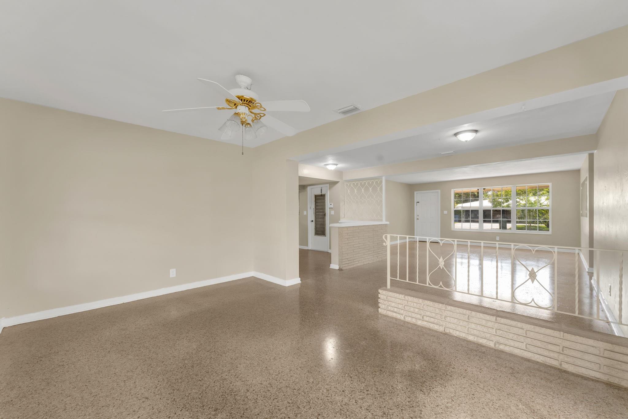PRICED BELOW MARKET VALUE. $309/SQ. FT.! Mid-Century charm looking for your personal touches! Desirable Floranada School district. 3/3 split layout. (3rd bedroom makes a great in-law suite or efficiency). This room has a private entrance, full bath, kitchenette, wood burning fireplace and access to backyard patio. Home features include; natural gas, partial impact windows and panels, polished terrazzo floors, updated electric panel, central A/C (2015), new lawn irrigation system and sod, interior and exterior freshly painted, 2 car garage plus resurfaced driveway with parking for up to 4 cars. This spacious home has endless possibilities and is PRICED TO SELL! Main house has Central A/C although some wall units are still in place. Efficiency has a wall unit a/c.
