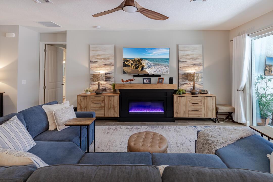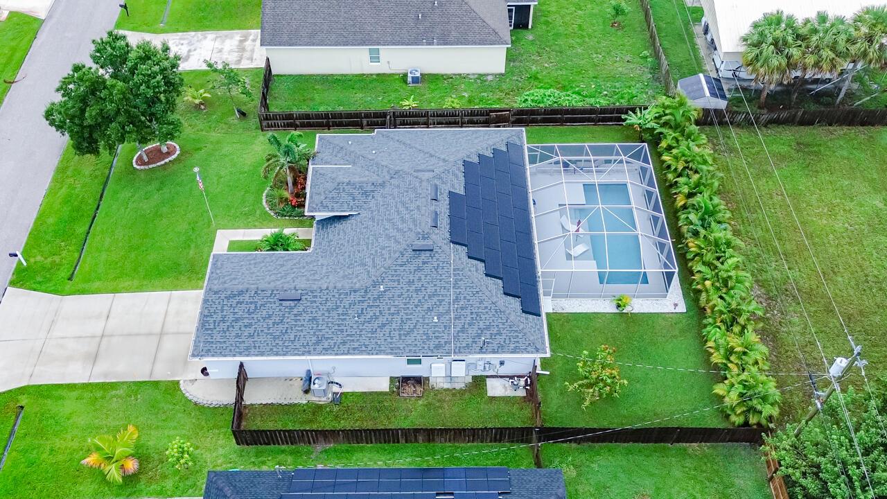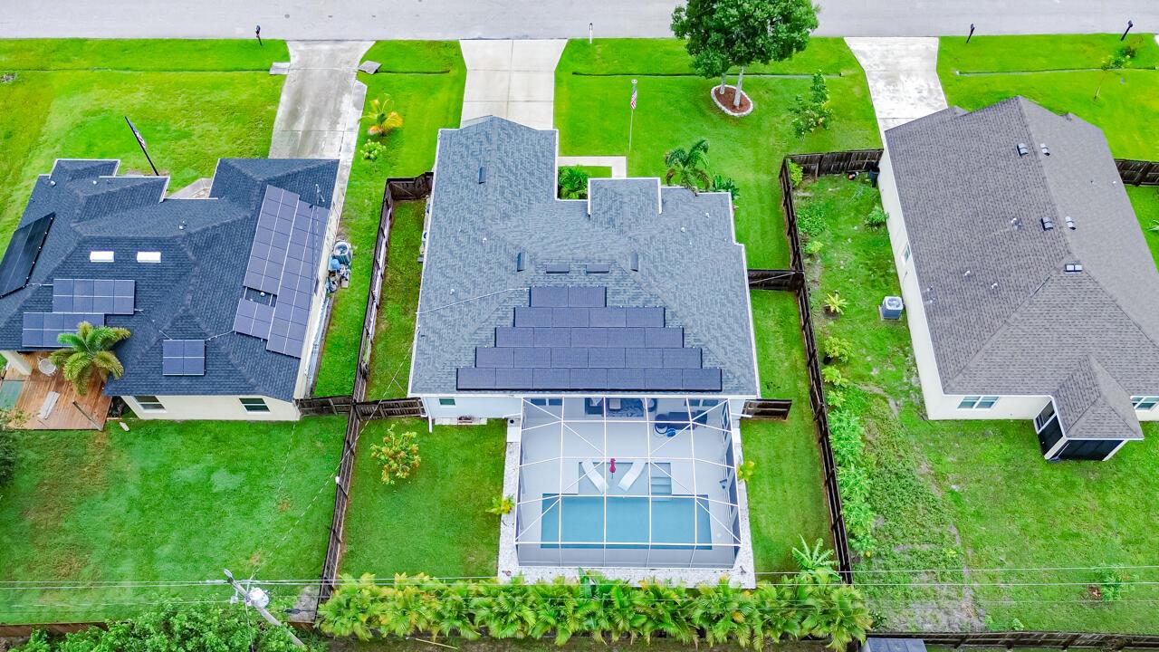 Beautifully maintained CBS home with no HOA, nestled on a quiet street. This 3-bedroom property includes a flex room with French doors, perfect as a home office or optional 4th bedroom. Step outside to your own backyard oasis featuring a saltwater pool with a screen enclosure and fully fenced yard, ideal for entertaining or relaxing.Built in 2021, this home offers granite countertops, 42'' kitchen cabinets, wood-look ceramic tile in the main living areas, and 8' interior doors throughout. The Tesla Solar Power System (9.6 kW with two Powerwall batteries) is paid off, fully transferable, and includes a warranty. The system provides excellent energy efficiency and backup power during outages, with an average electric bill of just $25/month.