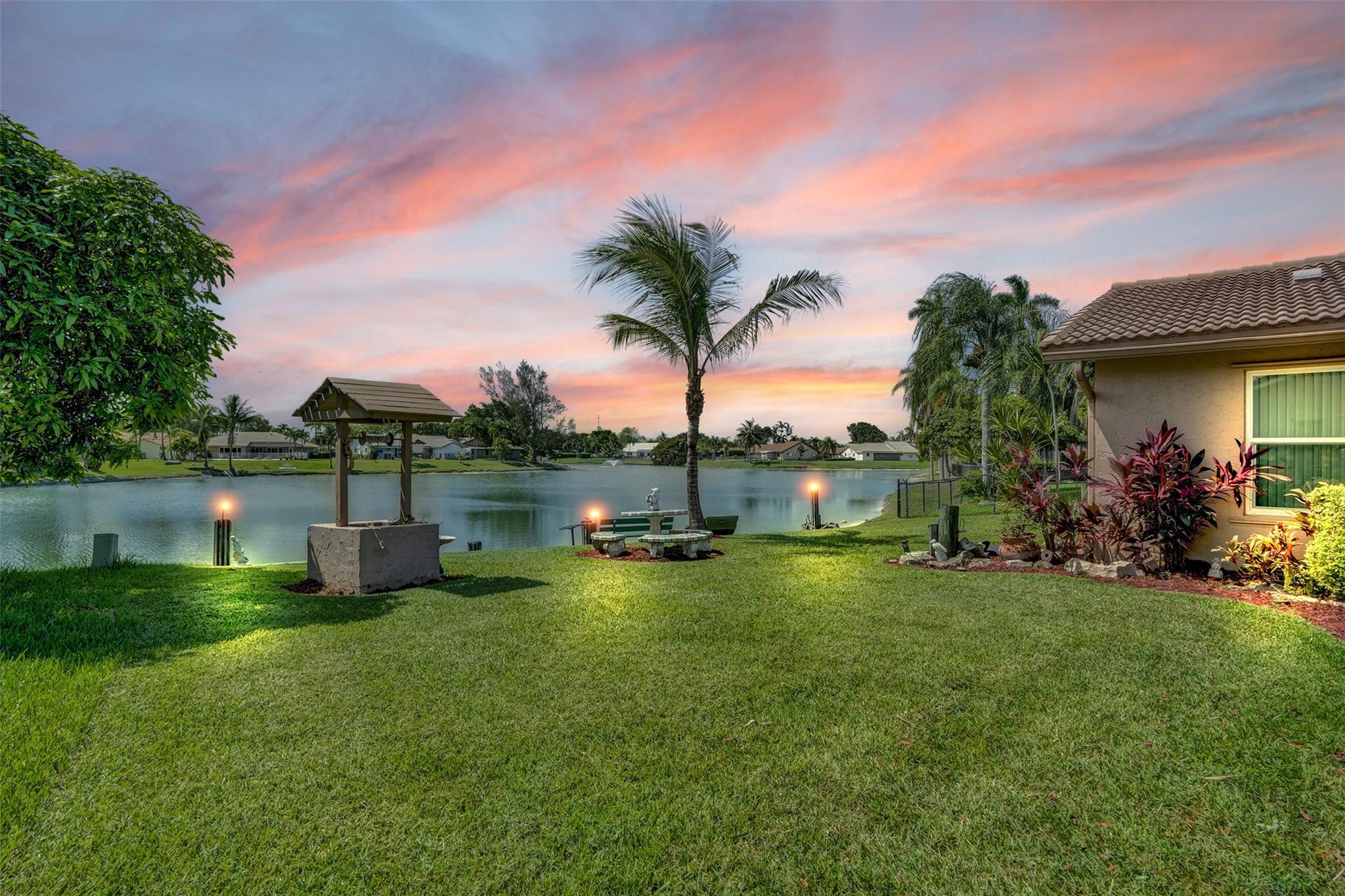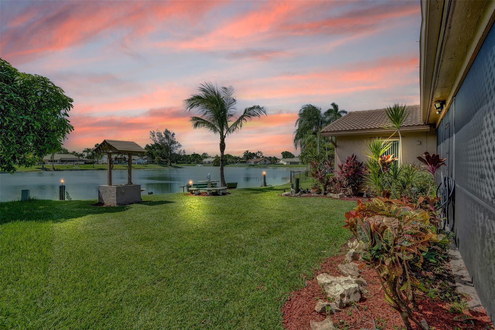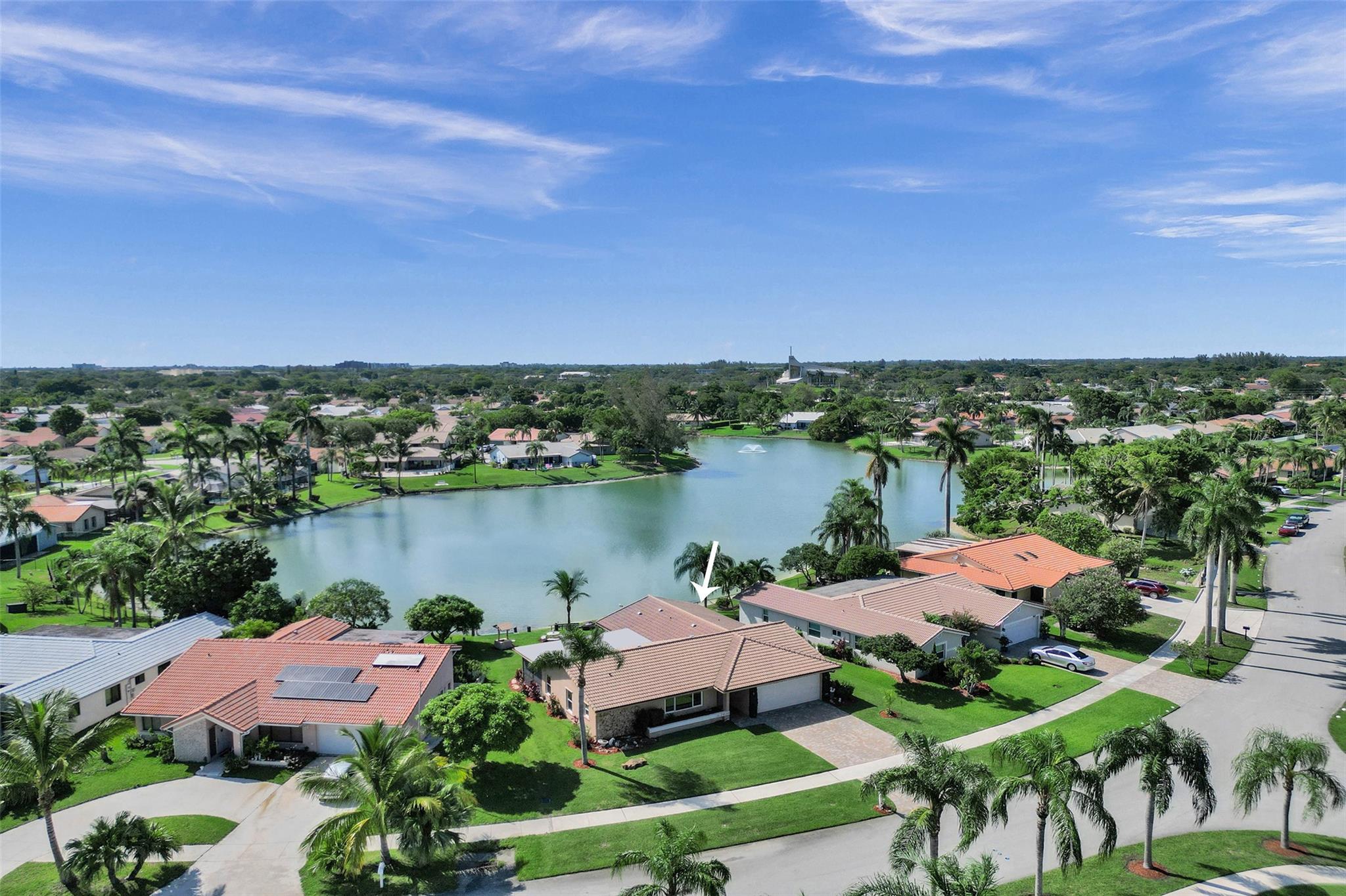 Lakefront sunsets every night! This 3-bed, 2-bath home offers peaceful water views & visiting wildlife right in your backyard. Relax & entertain year-round on the covered, screened-in patio overlooking the lake. Hurricane impact windows, sliders, & doors provide safety, comfort, & energy efficiency. Located minutes from Centennial Park & downtown Coral Springs. Inside, the split floor plan, vaulted ceilings, & natural light create a feeling of comfort. The kitchen offers extra cabinet space & buffet area, while both bathrooms have been tastefully updated. The spacious primary bedroom includes an oversized closet. Pride of ownership shines throughout with well kept landscaping. The irrigation system pulls water from the lake, helping save on utility costs. Low HOA of just $175 per year.