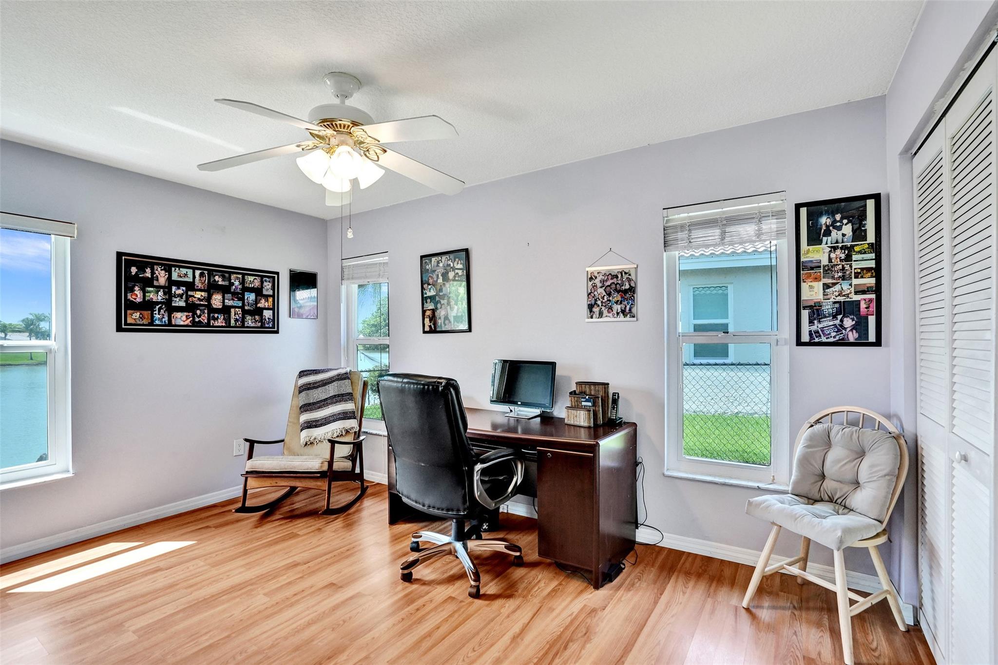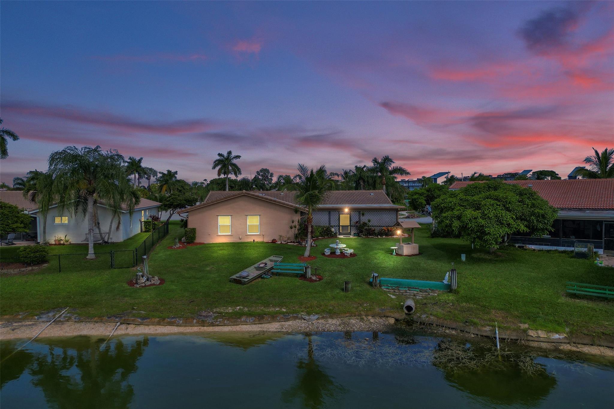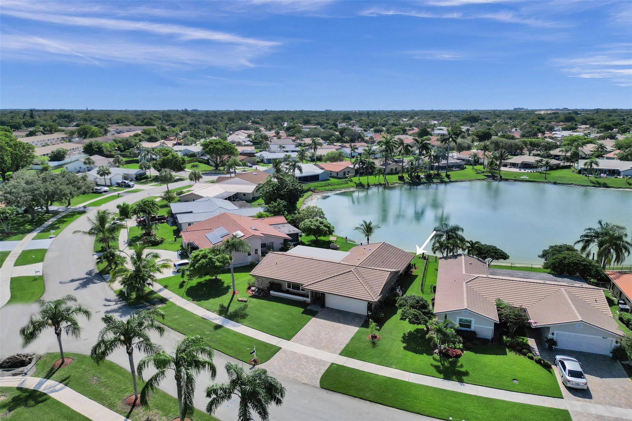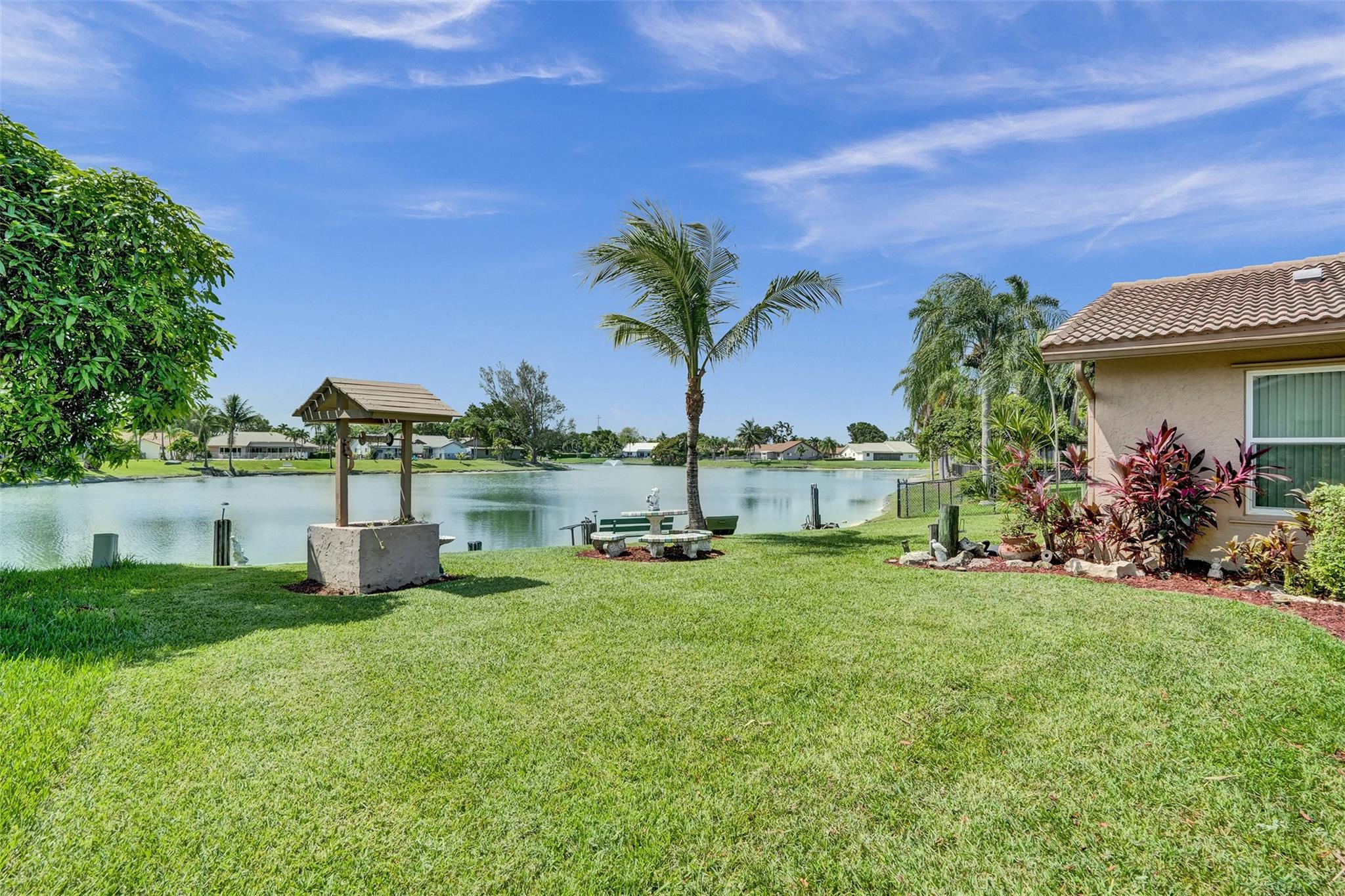 Lakefront sunsets every night! This 3-bed, 2-bath home offers peaceful water views & visiting wildlife right in your backyard. Relax & entertain year-round on the covered, screened-in patio overlooking the lake. Hurricane impact windows, sliders, & doors provide safety, comfort, & energy efficiency. Located minutes from Centennial Park & downtown Coral Springs. Inside, the split floor plan, vaulted ceilings, & natural light create a feeling of comfort. The kitchen offers extra cabinet space & buffet area, while both bathrooms have been tastefully updated. The spacious primary bedroom includes an oversized closet. Pride of ownership shines throughout with well kept landscaping. The irrigation system pulls water from the lake, helping save on utility costs. Low HOA of just $175 per year.