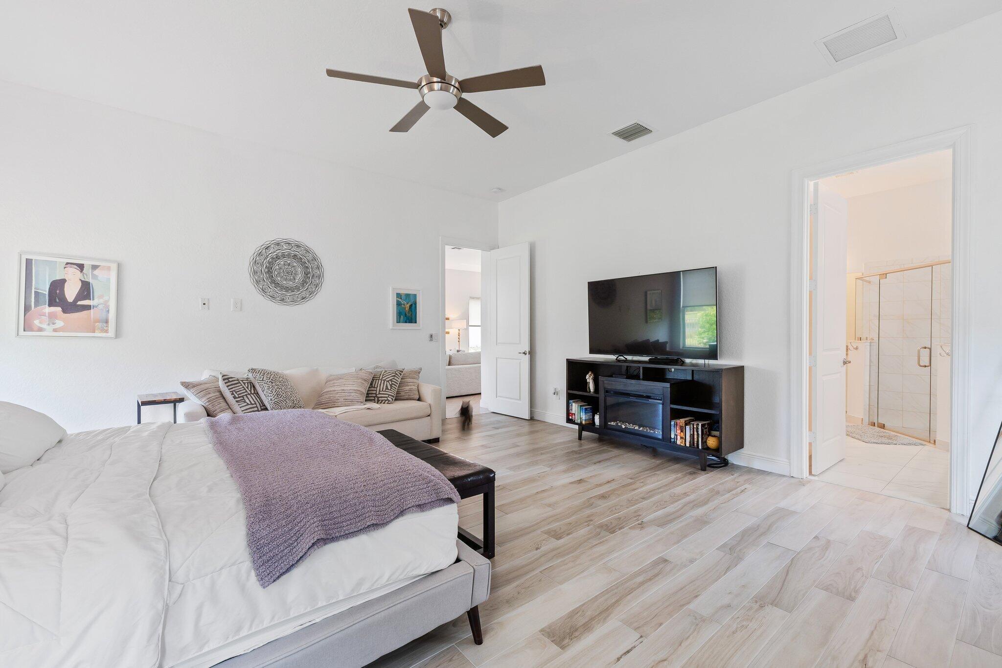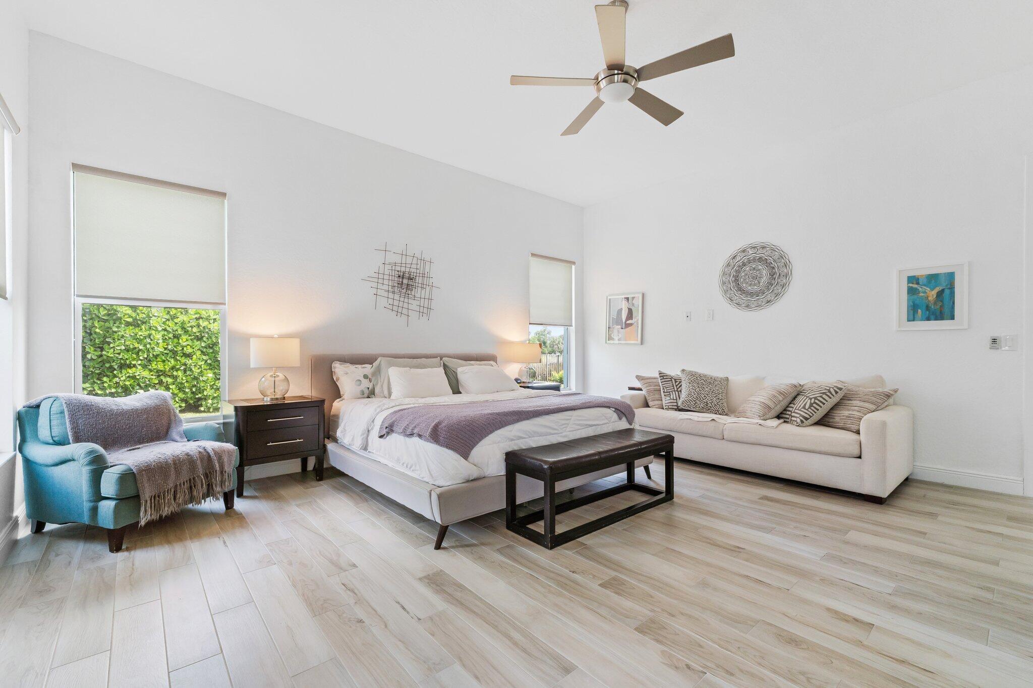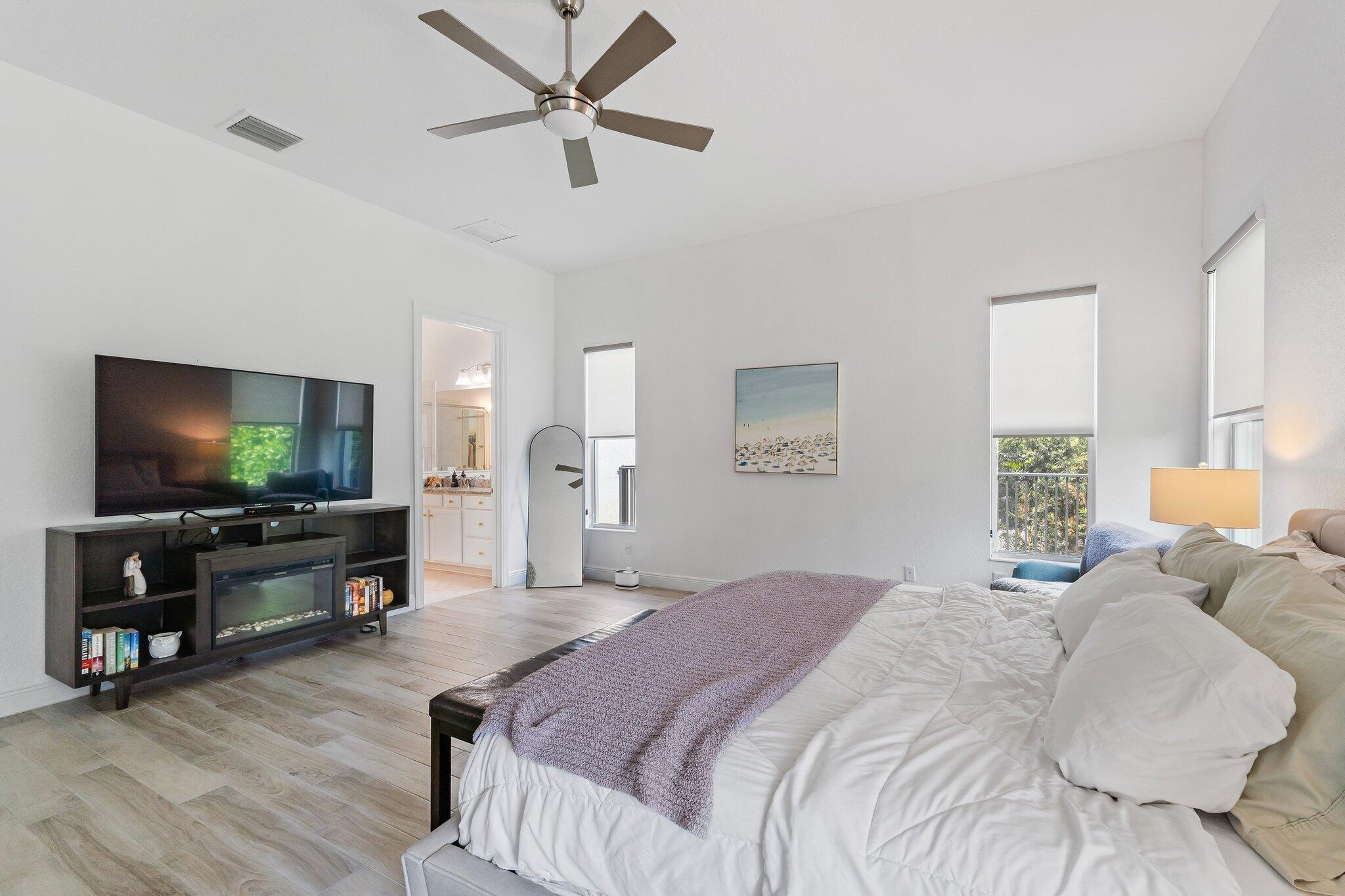 This is the beautiful Antigua Model home. One of the most sought after floor plans in Banyan Bay with 3 Bedrooms and 3 full baths, all on one floor! The Calcutta Quartz Kitchen Counters, Black Stainless Steel appliances and Farmhouse Sink make this home a standout! You'll also love the Custom Features throughout, including Shades & Blinds, Lighting, Shelving, Ceramic Tile flooring and more! A new Lennox AC with UV light was installed in October 2024. The fully fenced yard is great for kids and pets, and the screened in Lanai provides beautiful lake views. There's plenty of room for a pool, but the community pool is wonderful, so a great community with sidewalks, a private boat launch for kayaking or paddle boarding.