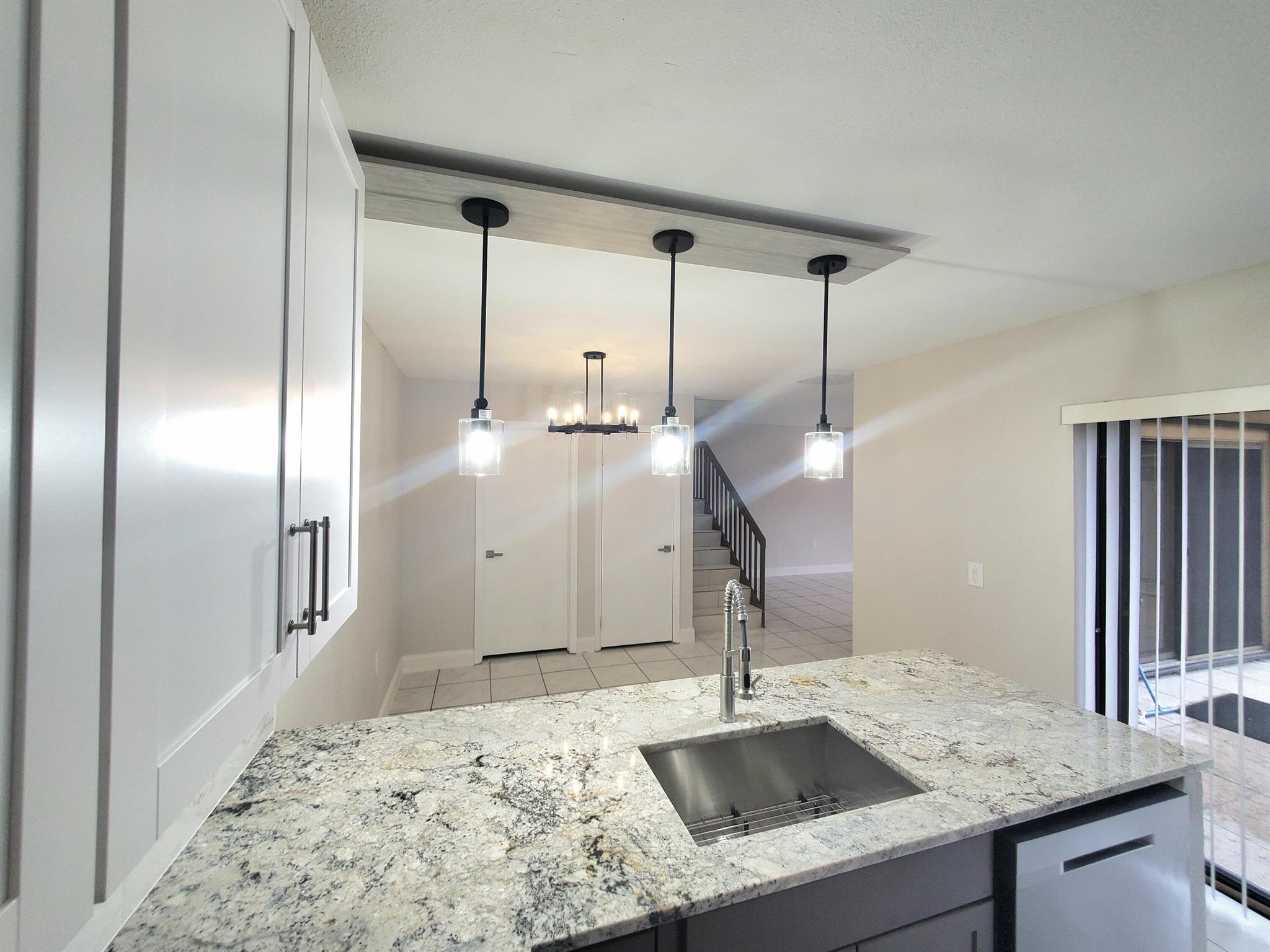 MOVE IN READY! Step into this stunning, fully remodeled DiVosta-built townhome-- with top-to-bottom upgrades! The beautifully redesigned kitchen boasts granite countertops, rich wood cabinetry, and sleek stainless-steel appliances. The spacious master suite offers a stylish barn door entry to a modern bath featuring a glass-enclosed shower, Carrara marble vanity, and upgraded fixtures. Additional highlights include newly renovated bathrooms, fresh interior paint, updated lighting and ceiling fans throughout, and a full-size laundry room with washer, dryer (2022), and cabinetry. Enjoy expansive closet space, a large storage room, accordion hurricane shutters, and your own private courtyard.