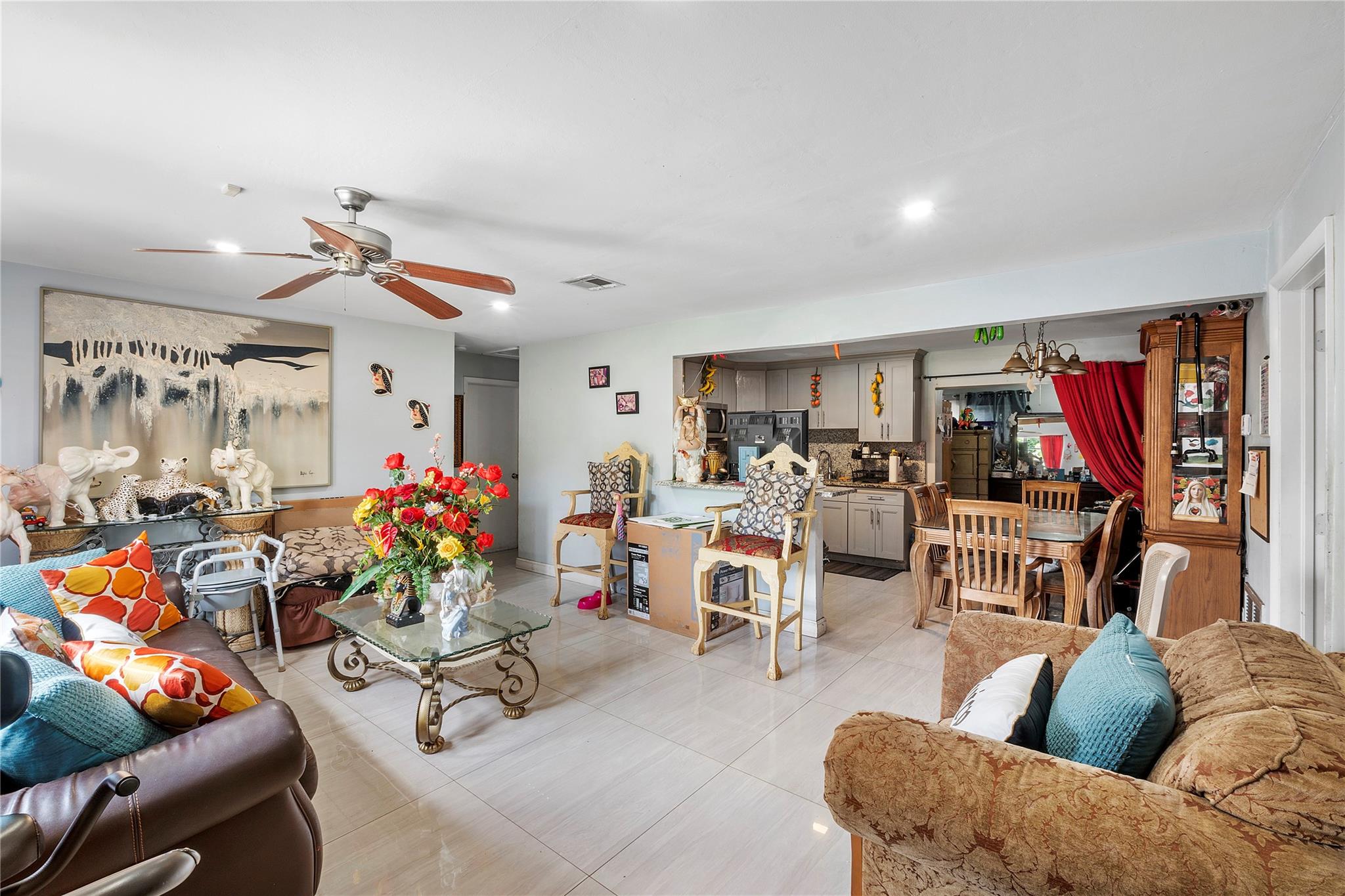 This three-bedroom, two-bathroom home offers approximately 1,350 square feet of living space. The property features a spacious yard, a paved driveway, and abundant natural light throughout. The open concept design creates a inviting and airy atmosphere, while the spacious kitchen provides ample granite countertop, brand new refrigerator and wood cabinetry, The home has a new roof 2022, a converted office that can be used as 4th bedroom, a remodeled kitchen with granite countertops, modern ceramic floors throughout, and a family room with access to the screened porche in backyard. The house has full protection with Accordion hurricane shutters. Call for private showing,