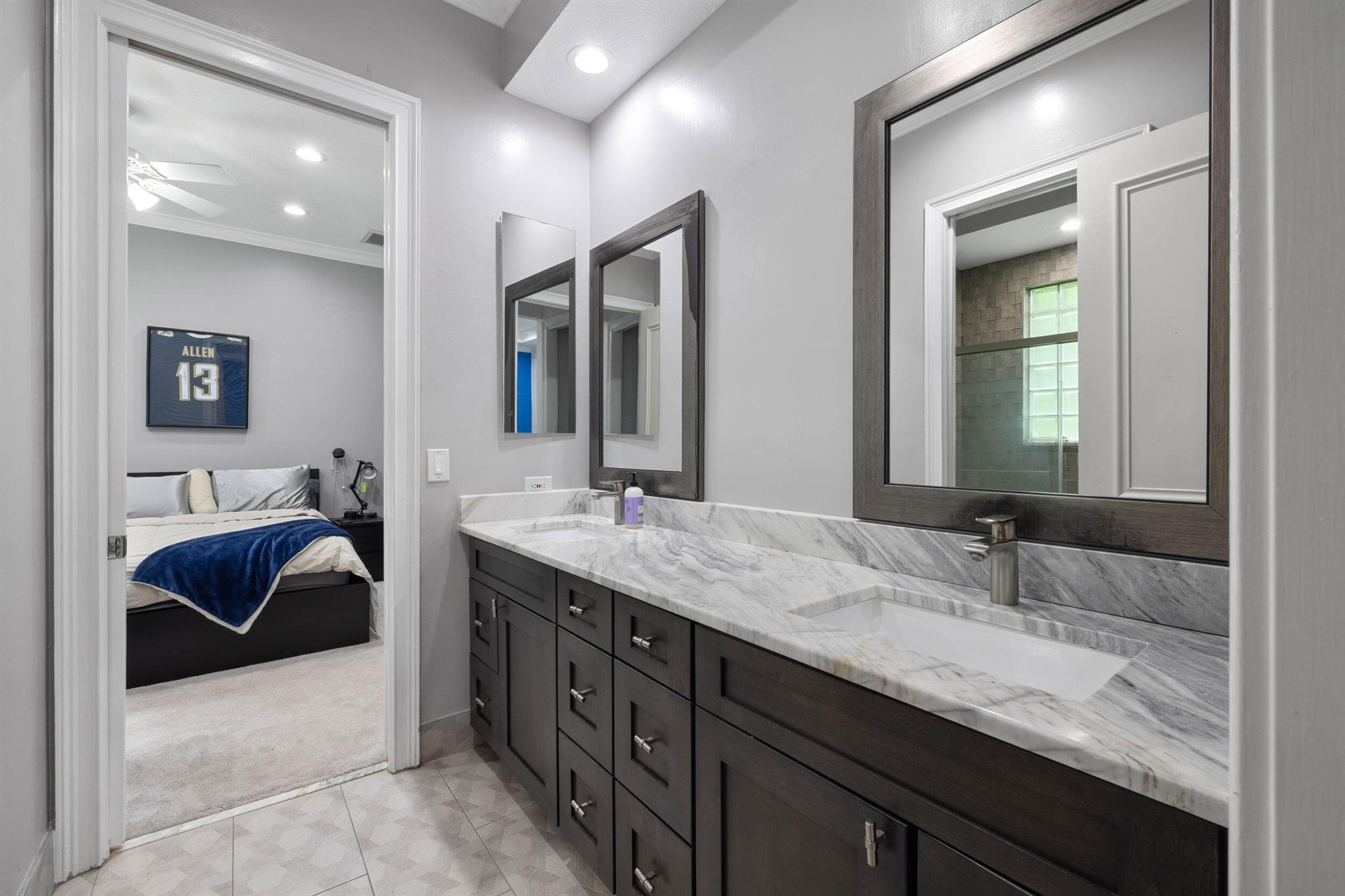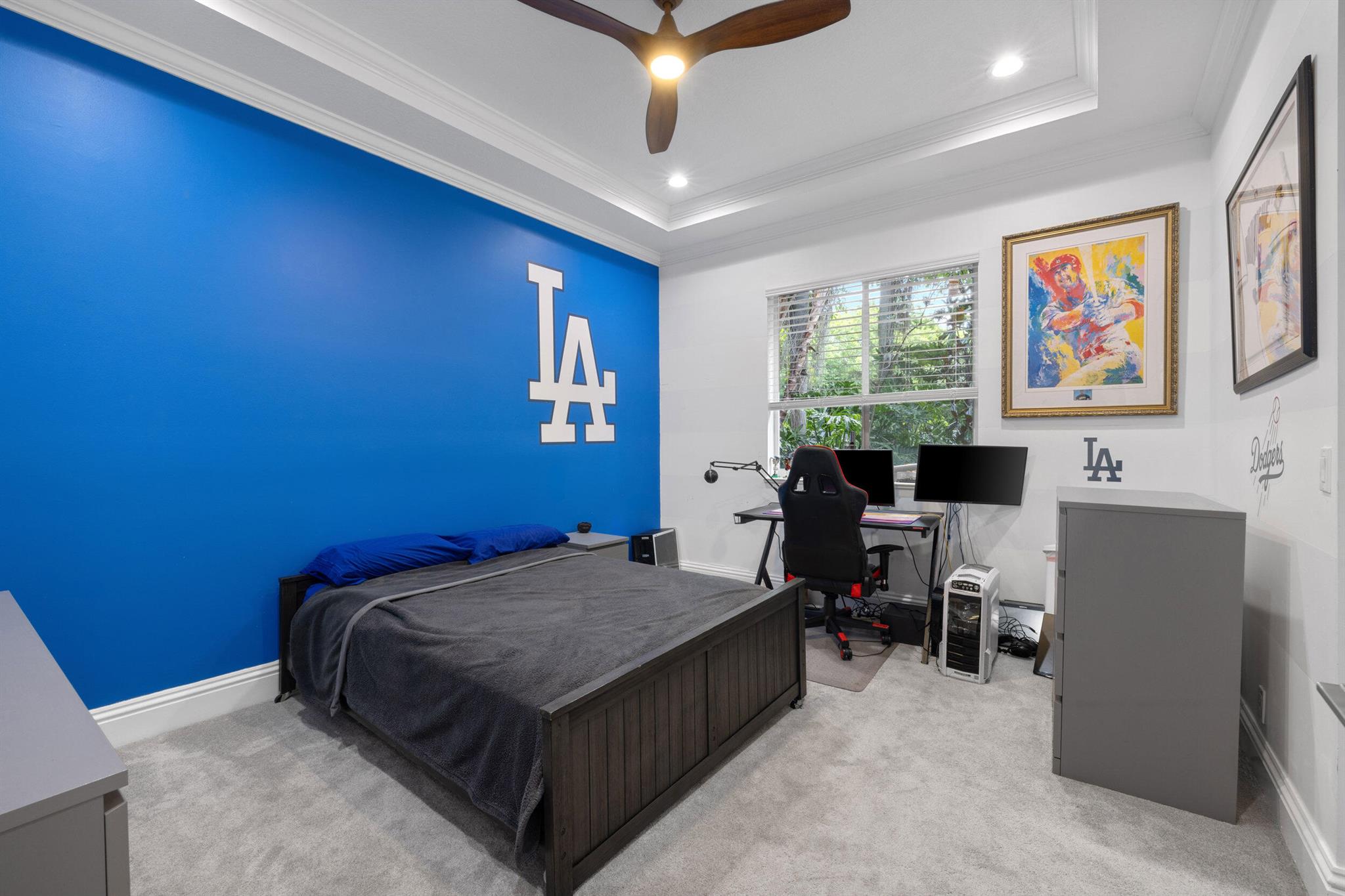 Set on an oversized 17,049 SF lot, this nearly 5,000 SF single-story estate offers unmatched lifestyle and location in Seasons--Boca's premier east-of-441 gated enclave. With a newer roof, upgraded air conditioners, and fully paid solar panels, this residence blends timeless elegance with modern efficiency.Featuring five bedrooms, including four en-suites, a private office, and a split primary suite with direct pool access, the home is designed for both comfort and privacy. Soaring ceilings, a chef's kitchen with gas range, premium appliances, custom cabinetry, and dual pantries elevate everyday living.Step outside to a resort-style courtyard complete with a saltwater pool, spa, summer kitchen, and expansive fenced yard--ideal for entertaining or peaceful retreat. Just minutes