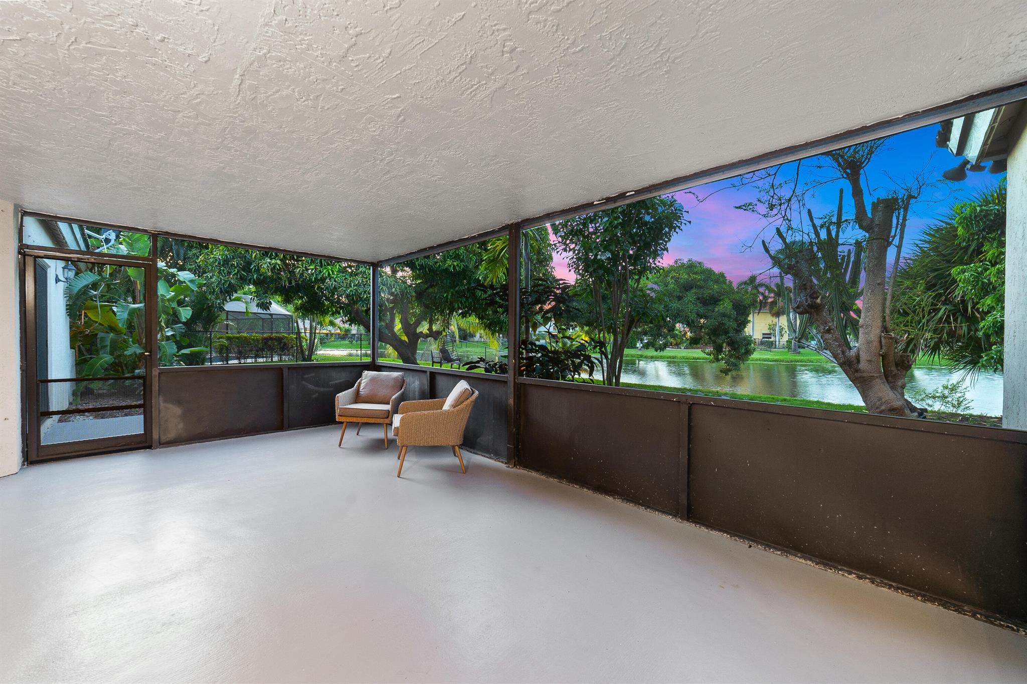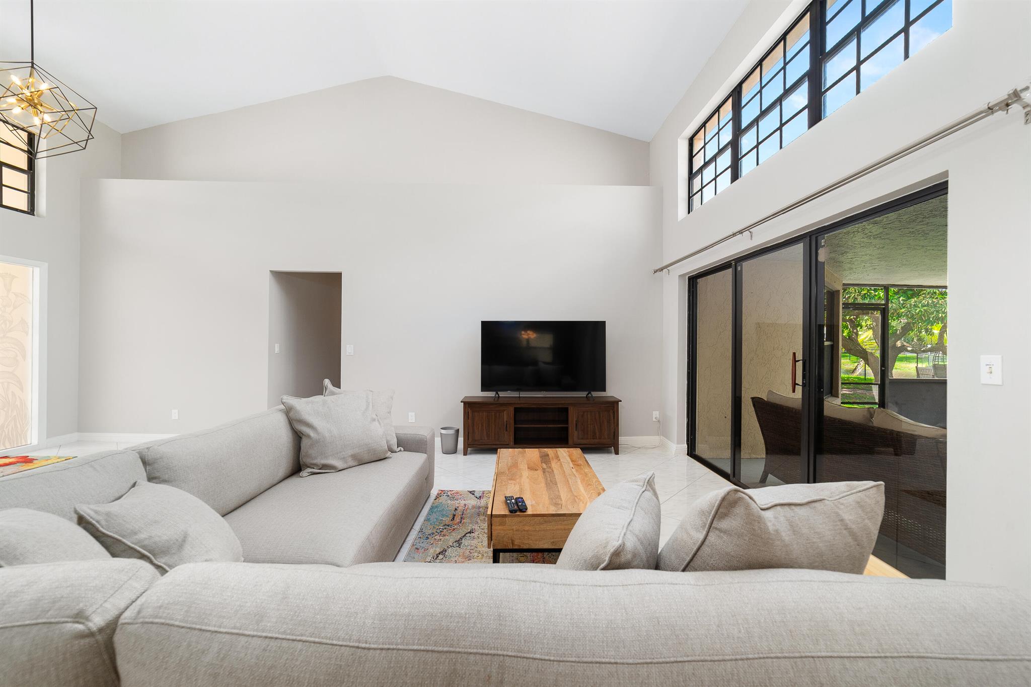Enter into modern elegance in this 4-bedroom, 2-bathroom residence nestled in the highly sought-after Forest Ridge community of Davie. From the moment you arrive, the grand roundabout driveway and 2-car garage set the tone for this sophisticated home. Inside, soaring vaulted ceilings and an airy open-concept layout create a bright and inviting atmosphere. The expansive living and family room areas flow effortlessly into the updated flooring and modern finishes throughout. The spacious primary suite offers a tranquil retreat, featuring tray ceilings and a partially updated en-suite bath. Head outside to your private oasis with an oversized covered patio overlooking a serene canal lined with mature mango, lychee trees, and vibrant flowering cacti.