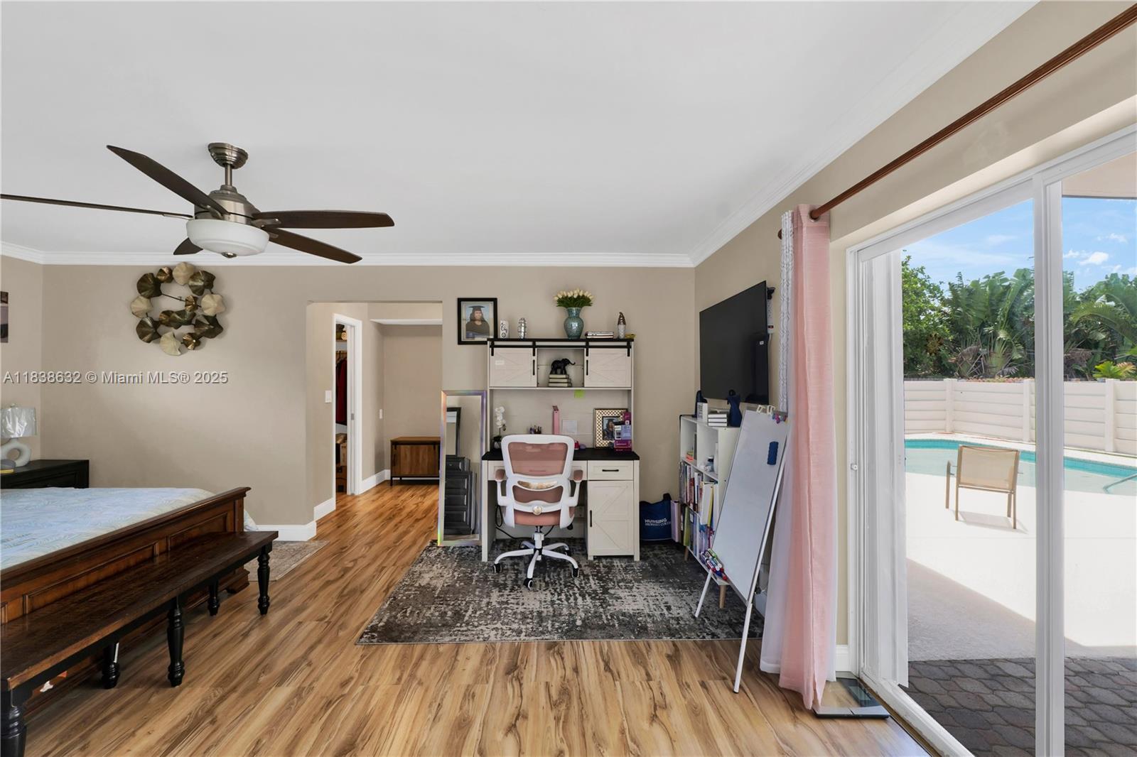 Beautifully upgraded 4-bedroom, 3-bathroom home featuring a spacious pool and exceptional versatility. The permitted garage conversion offers the perfect opportunity for an in-law suite, guest quarters, or even a creative space—previously utilized as a registered Airbnb. Additional highlights include a stand-by generator, a 6-year-old roof, impact windows, accordion shutters on all three patio doors, and a variety of mature fruit trees. A true Florida gem—ideal for comfortable living.