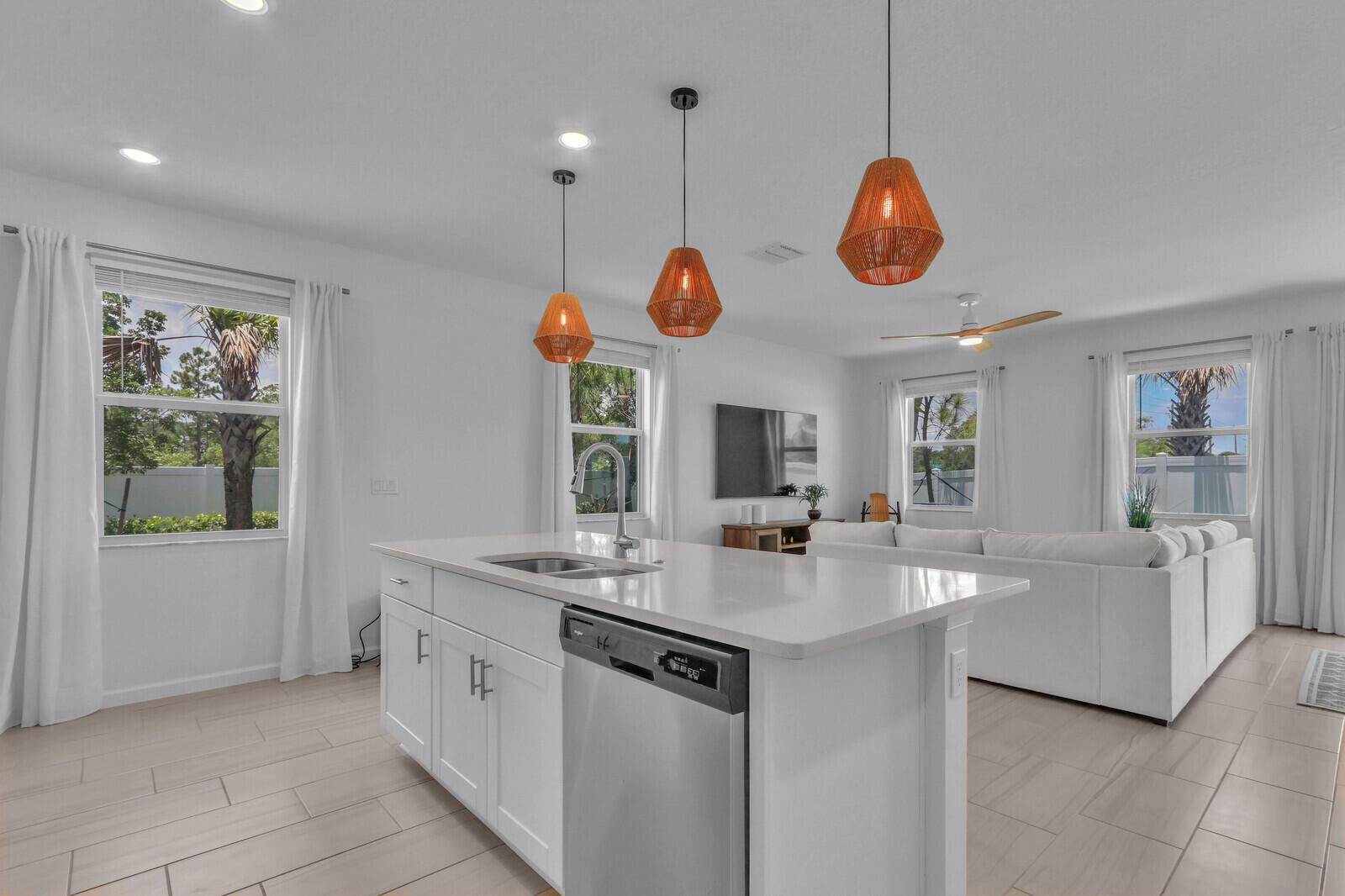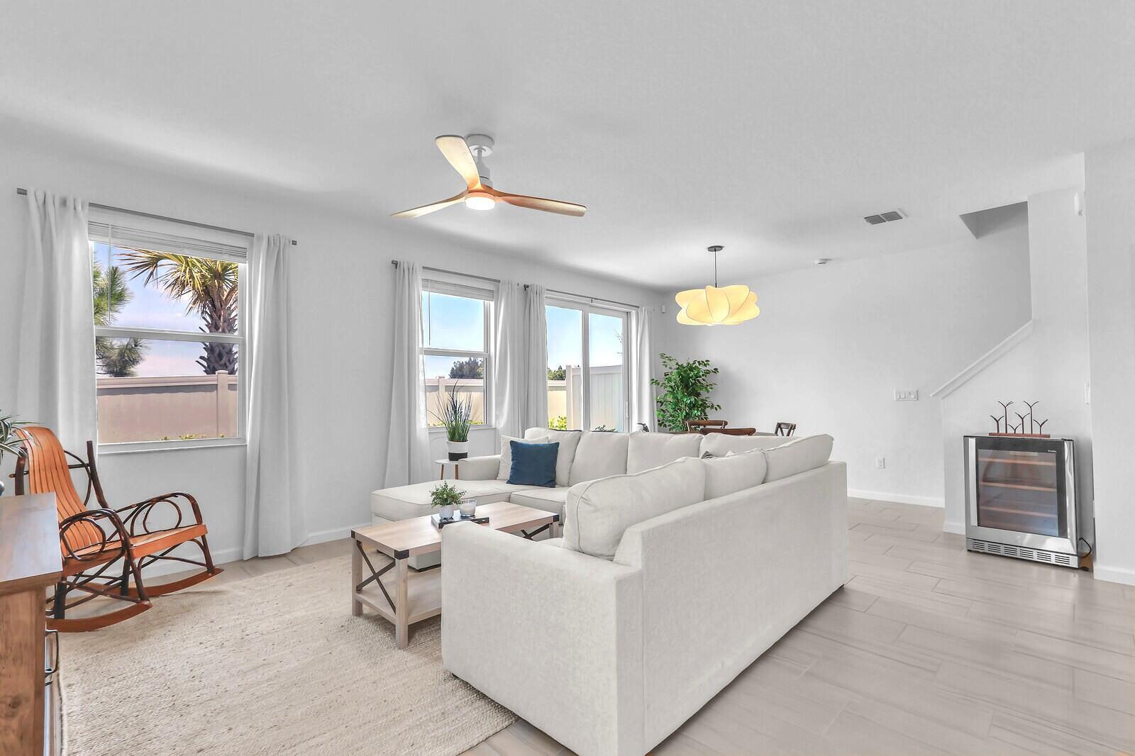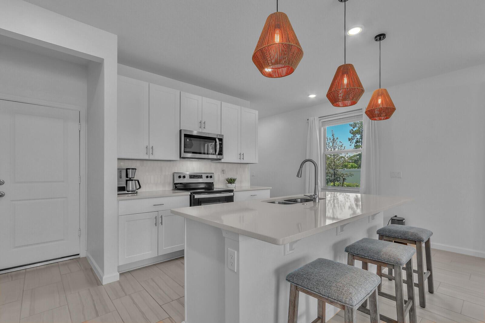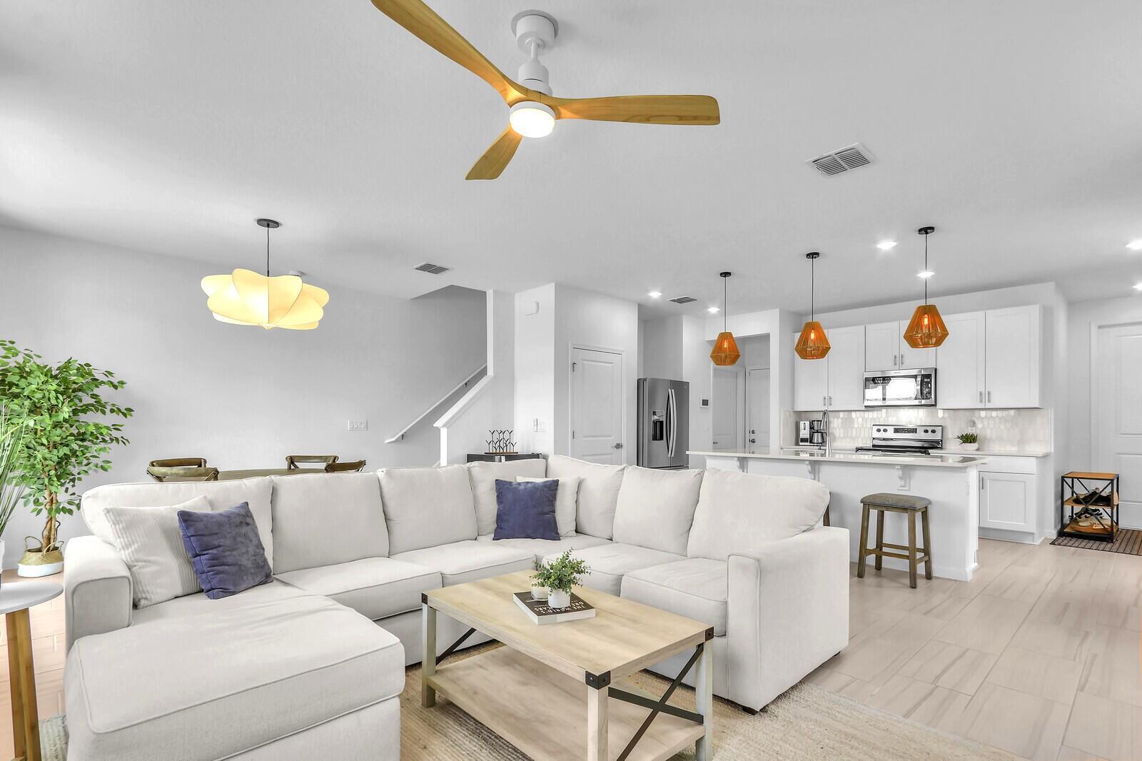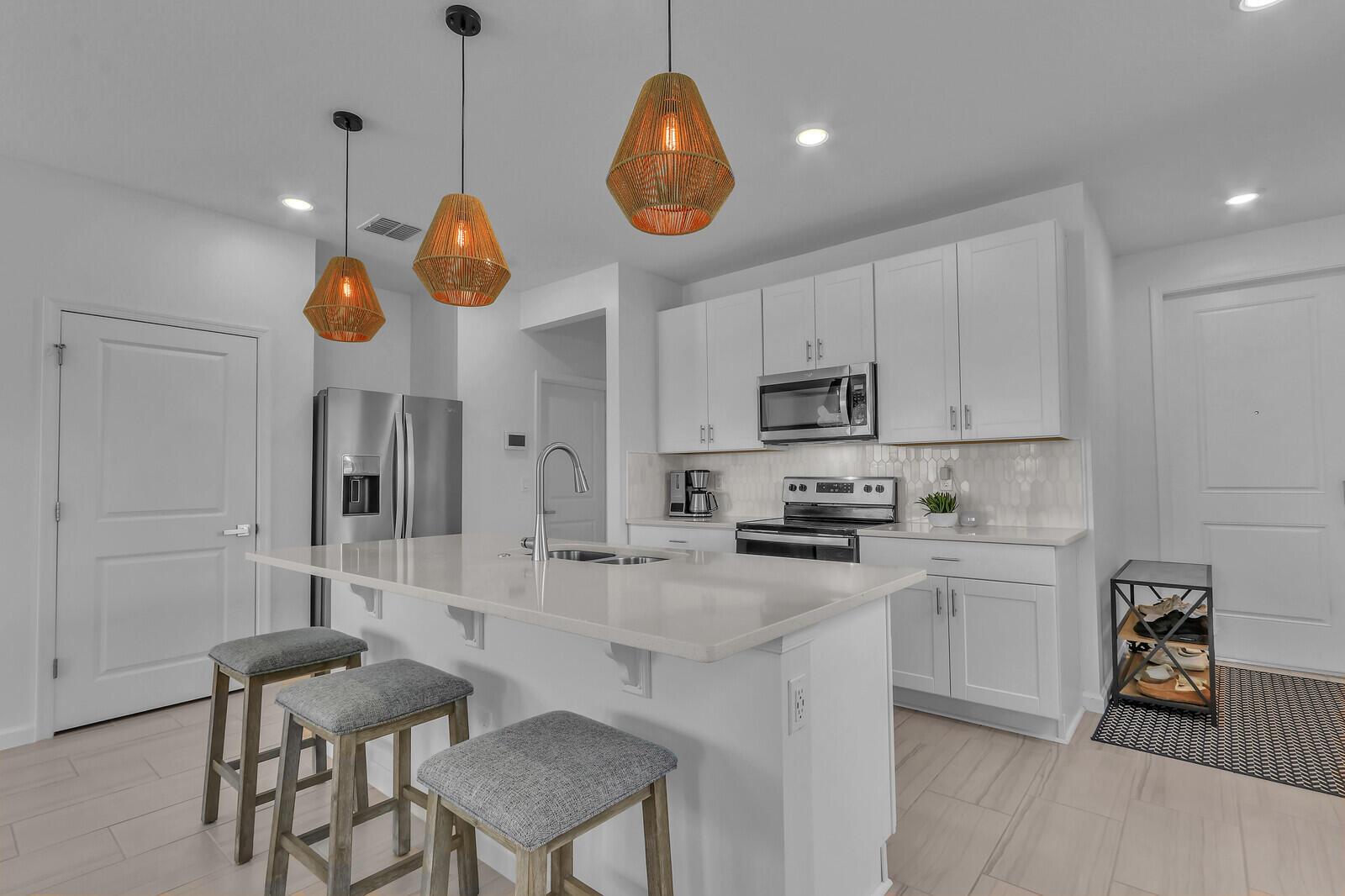 2024 Constructed 3 Bed, 2.5 Bath, 2 car garage, end unit townhome. No waiting to build, no builder's fees! Move right in to this spectacular unit and experience $30k+ of additional upgrades the owner has lovingly added including white shaker cabinets, white quartz counters, pendant lighting, marble backsplash, custom vanity in 1/2 bath, enhanced overhead lighting and fans, laminate flooring on the stairs and throughout the entire 2nd fl. The garage floor has a durable epoxy surface to provide a clean and stain free surface to keep your toys and tools. Why wait when you can have this beauty now! Furnished at $495,000!