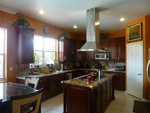 Beautiful Spacious Home located in desirable Sunset lakes on a builders half acre culdesac with a panoramic view of the lake and custom designed pool accompanied by gorgeous landscaping including a water fountain with fish, gazebo and spectacular lightin g ready to host any event. Spacious living/dining room vaulted ceilings. Family room and, updated gourmet kitchen with granite counters along with Stainless steel appliances w/ view. Master suite composed of sitting area, balcony w/view of pool and lake.