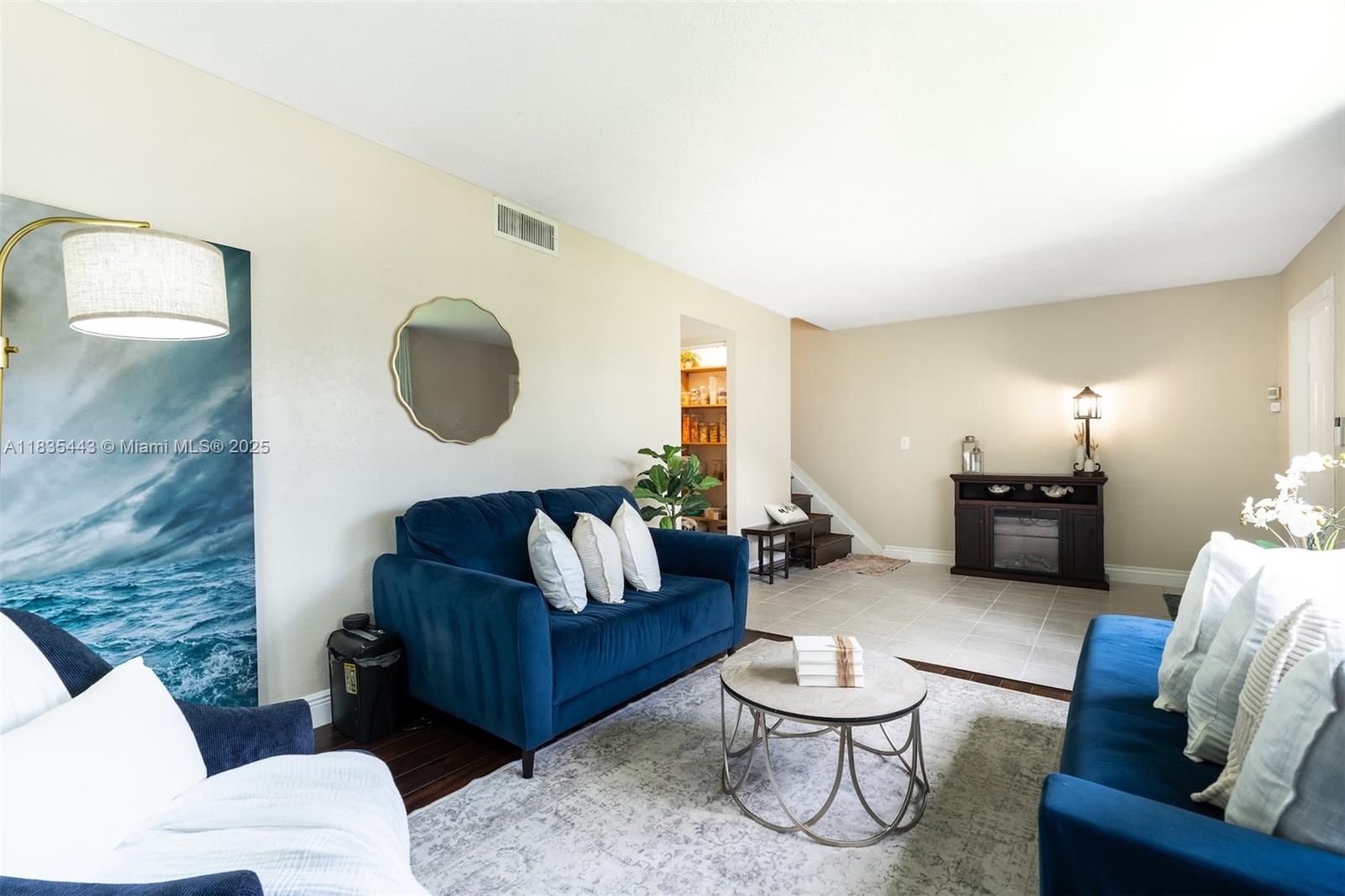 Welcome to this beautifully renovated 3 bed / 2.5 bath corner, townhome located in the heart of Davie! This spacious residence features tile flooring on the first floor and hardwood flooring upstairs. Enjoy peace of mind with impact windows & impact sliding doors. The renovated kitchen is equipped with newer appliances, full size washer & dryer and the bathrooms have been tastefully renovated. A/C was replaced in 2021 and Roof is maintained by the HOA. 1 assigned parking space with ample guest parking available right in front of the townhome. The patio is fenced. Reserves 8.8% of budget- attached. No special assessments. The community has a pool and a child play area. Conveniently located near major highways, top-rated schools, dining & shopping.