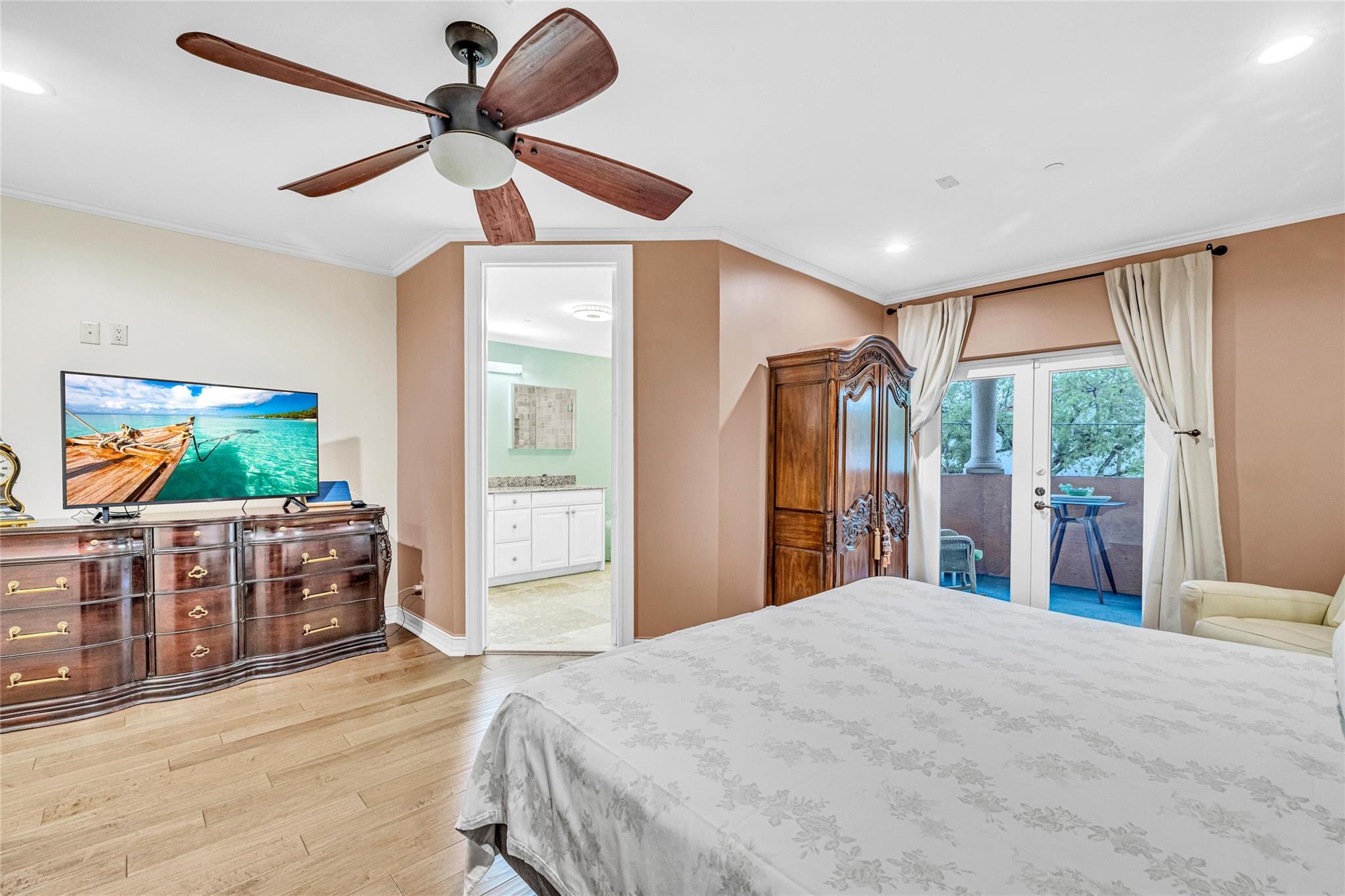 Discover a chic Victoria Park townhome featuring an elevator, three spacious balconies, and a rooftop terrace. A gated garden entry welcomes you into generous living spaces and a chef’s kitchen equipped with premium appliances, a gas range, an island, and plenty of cabinetry. Natural light fills the open layout through east-facing bay windows. This level also includes a two-car garage, pantry, powder room, and elevator. Upstairs, the primary suite has a remodeled bath, walk-in closets, and a private balcony. There are two more bedrooms, an updated bath, and laundry facilities on this floor. The top level features a loft-office, a full bath, and a fourth bedroom with its own balcony and rooftop access. Ideally situated near beaches, Las Olas, shopping, dining, and various parks.