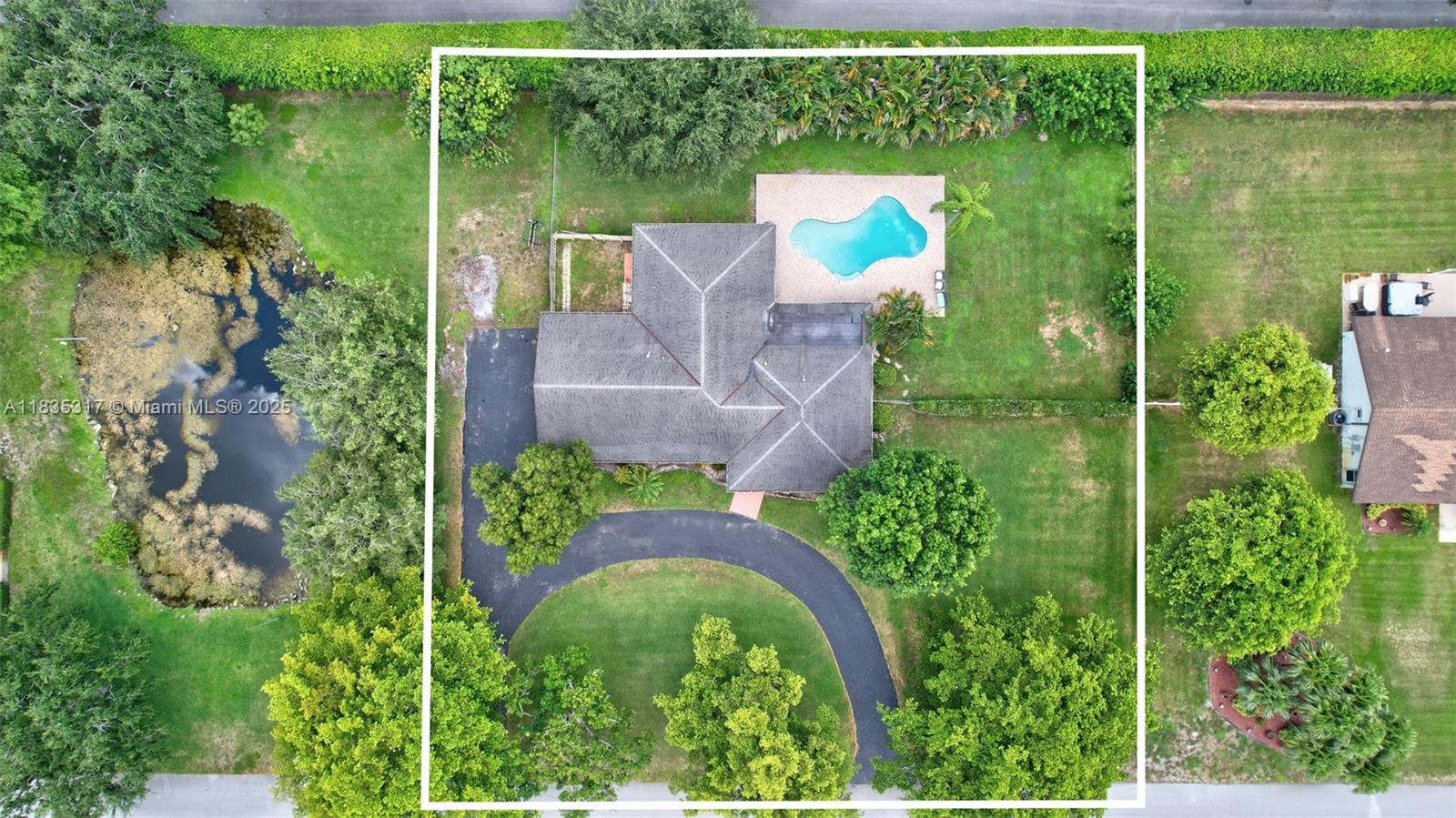 This great pool home in Davie is situated on a builder's acre in a private cul-de-sac. It features 3 bedrooms and 2 full bathrooms, a master bath with a frameless shower and a walk-in closet. This home offers porcelain tile flooring throughout. The updated kitchen boasts quartz countertops, a breakfast bar, and stainless steel appliances, and it seamlessly opens to both the living room and the family room. The spacious backyard includes a large stone paver deck and a covered patio surrounding a newly refinished free-form pool, all within a fully fenced yard. For added safety, the home is equipped with hurricane protection for all windows and doors. Conveniently located, this property is close to a variety of parks, dining, and entertainment options, and it lies within an A+ school district