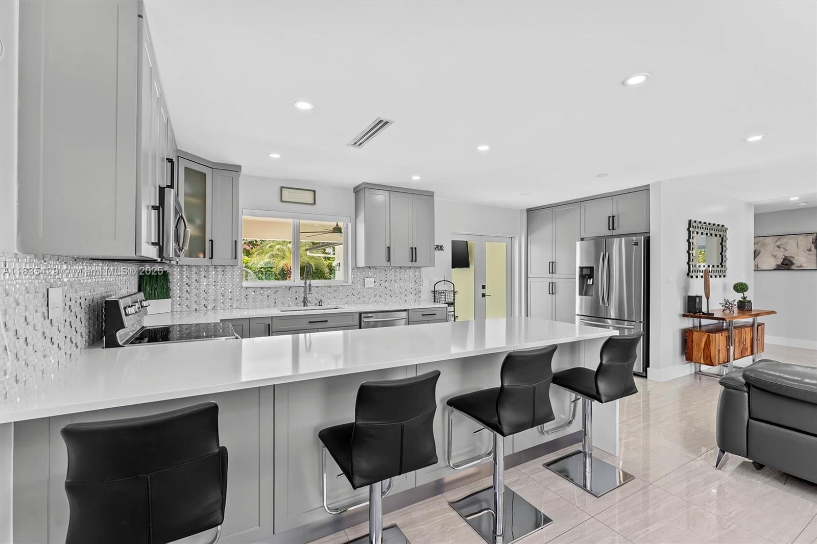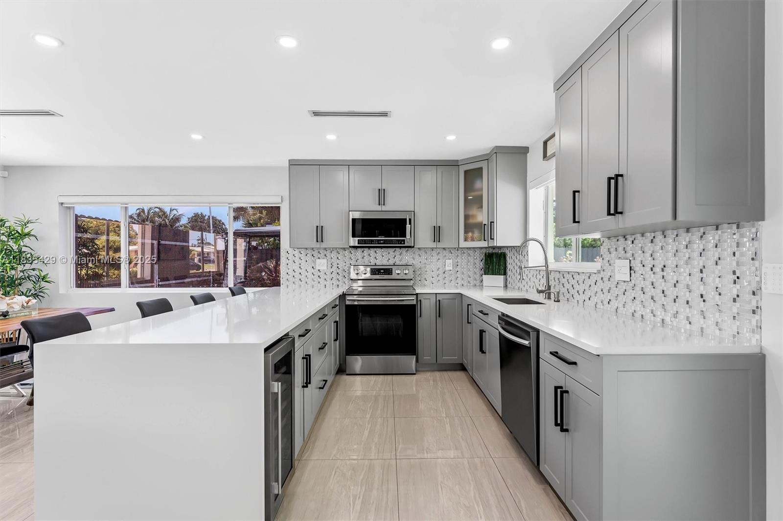 The entertainment house of the block! This stunning 4 bed, 3 bath home in the coveted PSN community was fully remodeled with no detail spared. Legal addition & complete renovations in 2022. Features include ALL NEW roof, impact windows & doors, electrical, plumbing, A/C ducts, recessed lighting & gas lines ready for connection. The spacious primary suite overlooks the pool & features a massive walk-in closet and beautifully finished en-suite bath. The modern open kitchen with quartz countertops flows into spacious living areas. Step outside to your private resort-style pool & covered patio—fully done in 2024, an entertainer’s dream! Circular driveway with artificial turf accents & a massive gated side lot ideal for your boat or RV. Conveniently located near major highway, dining & shops.