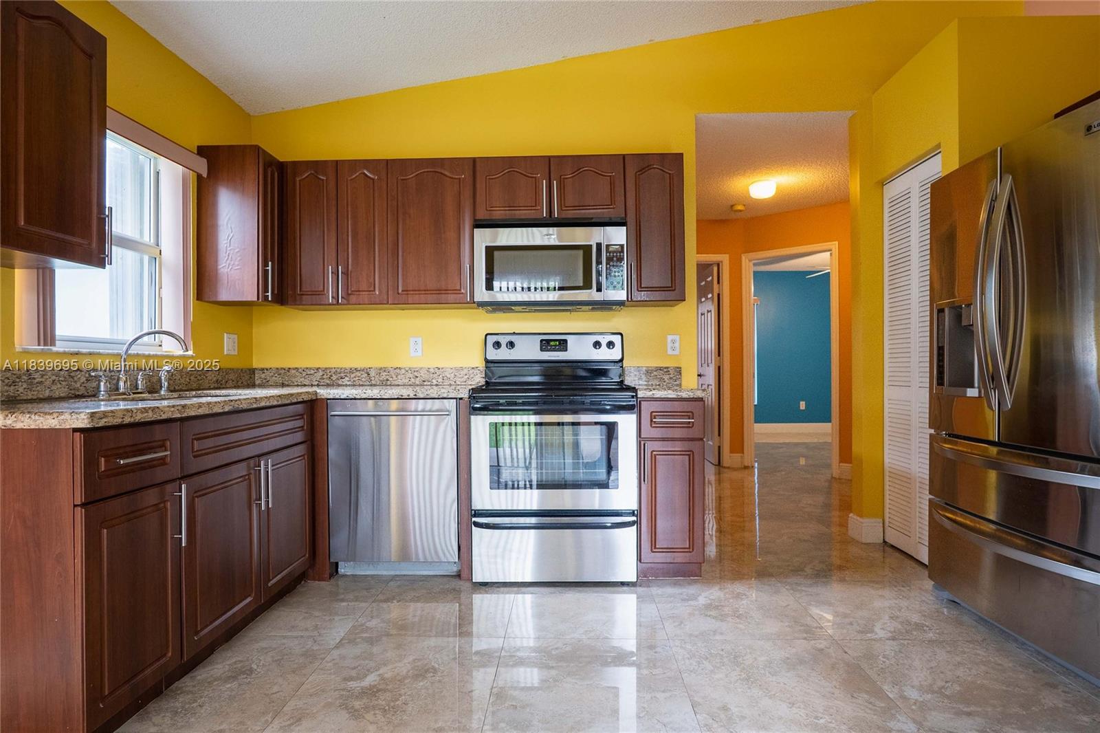 Welcome to Deerwood — a beautifully maintained single-family home in the highly desirable Miami-Dade community! This move-in ready home features a brand new roof and full accordion shutters, offering peace of mind during hurricane season. Inside, you’ll find elegant marble flooring throughout, an upgraded kitchen with modern appliances, and a spacious primary suite with a walk-in closet, glass enclosed shower, and a stand-alone soaking tub. Enjoy the convenience of a Samsung washer and dryer and an automatic garage door opener for your one-car garage. Located near the Florida Turnpike for easy commuting, this walkable, friendly neighborhood is perfect for families seeking comfort and convenience. Close to Zoo Miami, parks, great schools, plus nearby shopping and dining options!