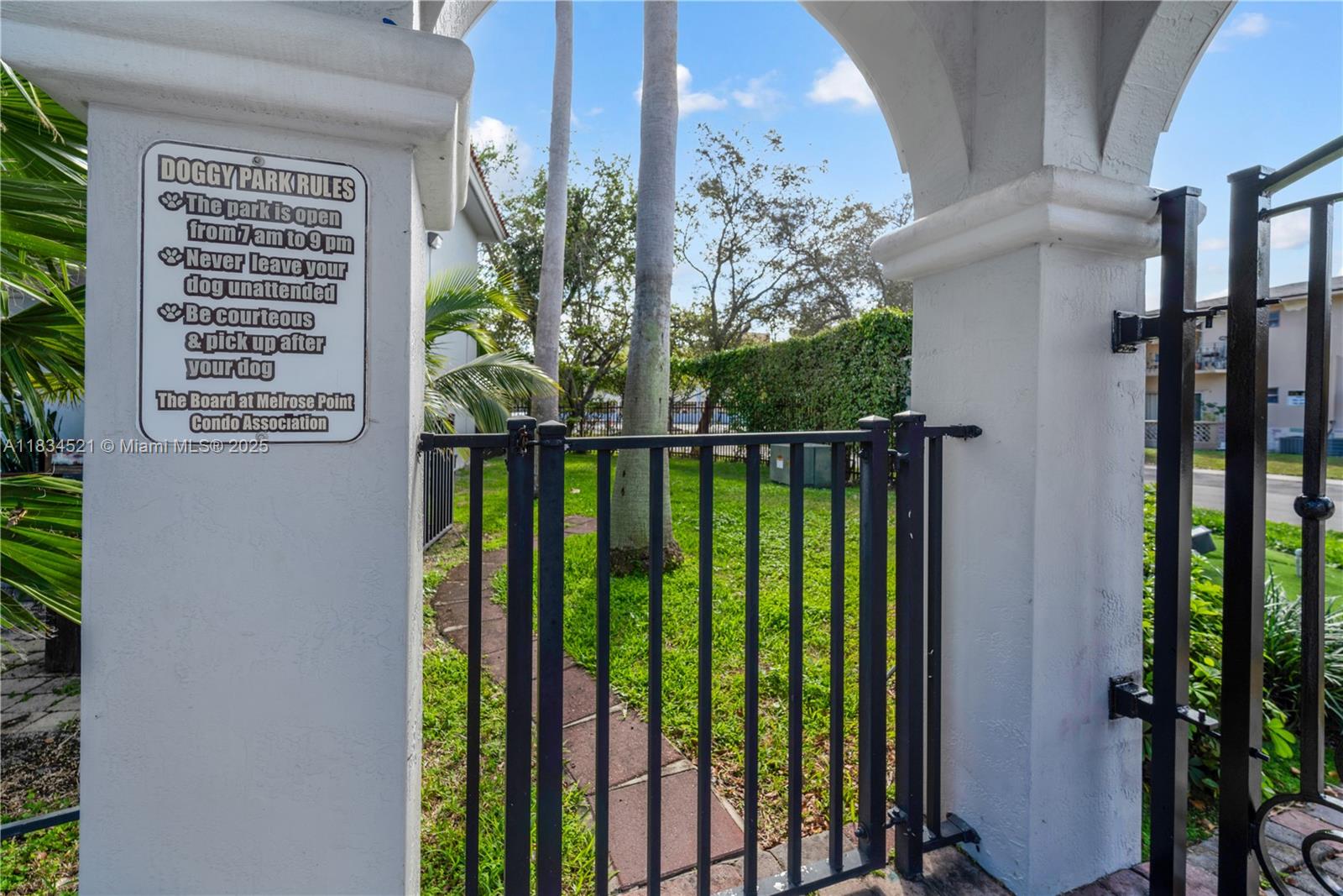 Hidden gem! Melrose Point - a gated 25-unit boutique community in North Miami’s San Souci area is tucked away off a side street from Biscayne Boulevard. Reminiscent of the old Melrose Place TV show, the townhouse-style condo buildings surround the community pool. This light-filled corner unit is conveniently located steps from the pool. Featuring a foyer entry, 9’ ceilings, & granite counters, your new home is move-in-ready with a stainless refrigerator, dishwasher & microwave - new in 2025. Also new are the first floor ½-bath vanity & modern lighting. Enjoy the private fenced patio, two parking spaces, community pool & dog park. Take advantage of easy access to Bal Harbour, Wynwood, upcoming new Midtown Park amenities, Downtown Miami, Miami Beach & San Souci Tennis Center. Pets okay.