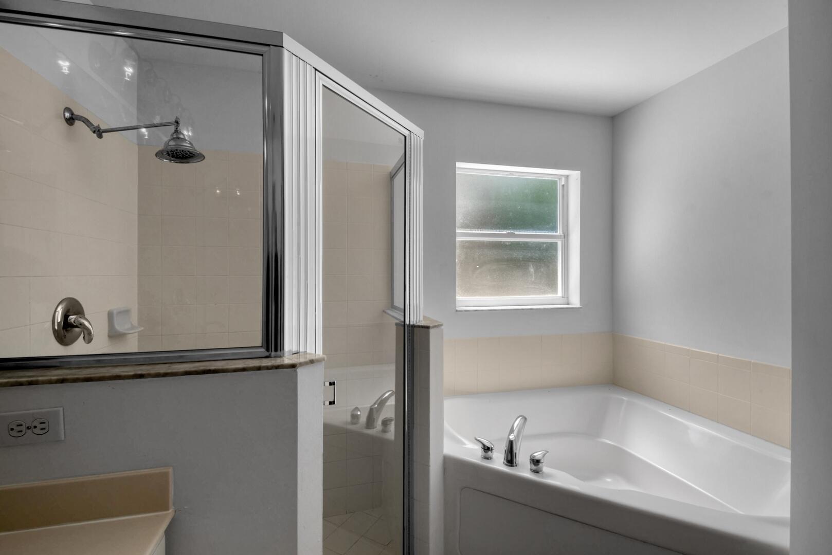 Welcome to this beautifully maintained home in a gated community just off 441--where convenience meets comfort! Step into a spacious living and dining area that flows seamlessly into the kitchen, featuring white cabinetry, a double farmhouse sink, and a custom range hood. The adjacent family room offers a cozy gathering space, accented by ceiling fans throughout the home for year-round comfort.The home includes a dedicated laundry room and a 2-car garage, plus a newer washer and dryer for added convenience. The guest bathroom is absolutely gorgeous, boasting a tub/shower combo with stylish finishes.The primary suite is a true retreat, offering tray ceilings, dual walk-in closets, a soaking tub, and a separate shower.Outdoors, relax or entertain in your private backyard