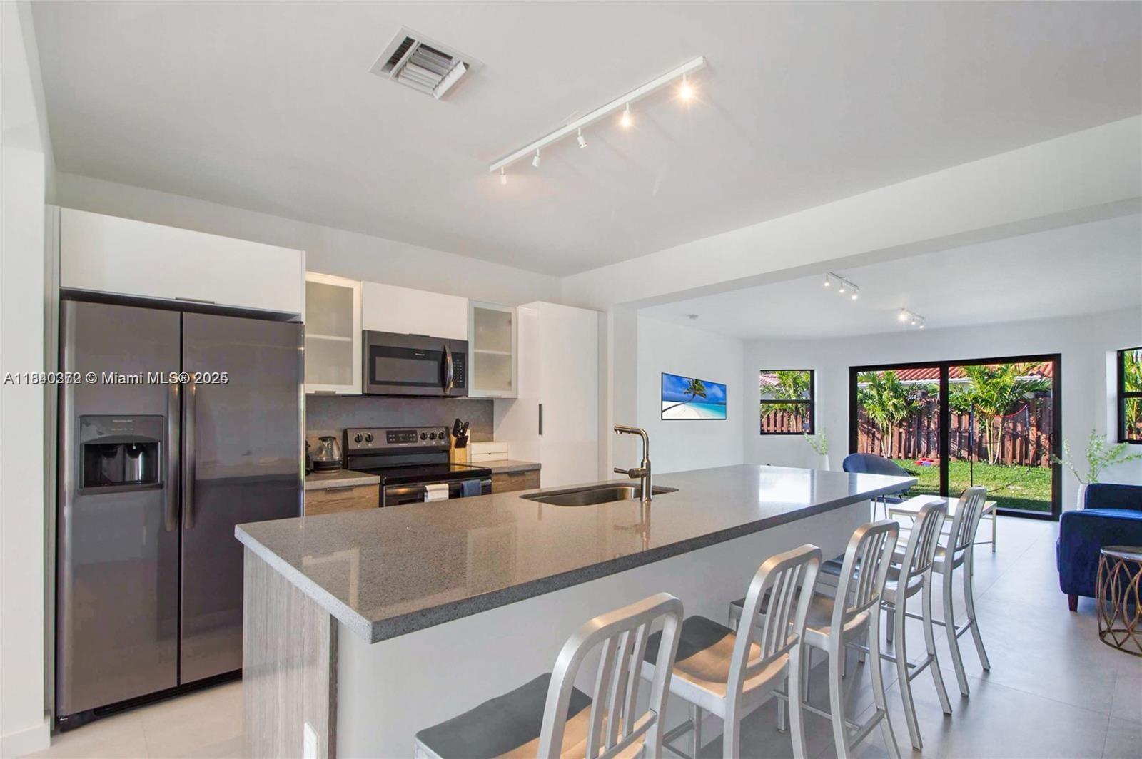 A stunning property in North Bay Village, meticulously renovated to perfection! Featuring 4 spacious bedrooms, 3 bathrooms, and 1,877 square feet of living space, this home boasts a custom kitchen with a chef's island, inviting living and family rooms, and hurricane-impact windows and doors. Updated in 2020 with new A/C, electrical, and plumbing systems, it includes designer closets in every bedroom, sleek porcelain floors, and smart lighting throughout. Abundant windows fill the home with natural light, seamlessly connecting to a private backyard oasis complete with a pool.