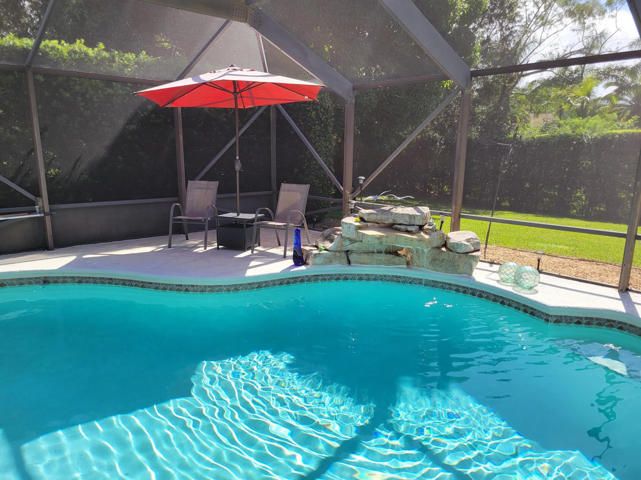 Tranquility prevails on this cul- de- sac. home in Sandpiper Bay, Spacious just shyhalf acre lot, Move in ready, 3Bedrooms/ 2.5 baths. New luxury vinyl wood flooring in the living, dining and family rooms. Kitchen features Corian countertops, stone backsplash, 2 year young LG stainless steel appliances , including refrigerator, dishwasher, wall oven, microwave, and built-in cooktop, Roomy living and family rooms, Walk-in closets. New LED Lighting. 65'' TV. In - home speaker system. Pool/Lanai 30 x 15 screened in salt water pool. Energy Features: Dual AC units, Solar panels for pool heating. Upgrades: New Generator. Sewer, Breaker box accordion shutters, 2 Car garage plus Carport with extended driveway for extra cars, boats, RVs 4 Point Wind inspection Jan. 2025. No roof issues.