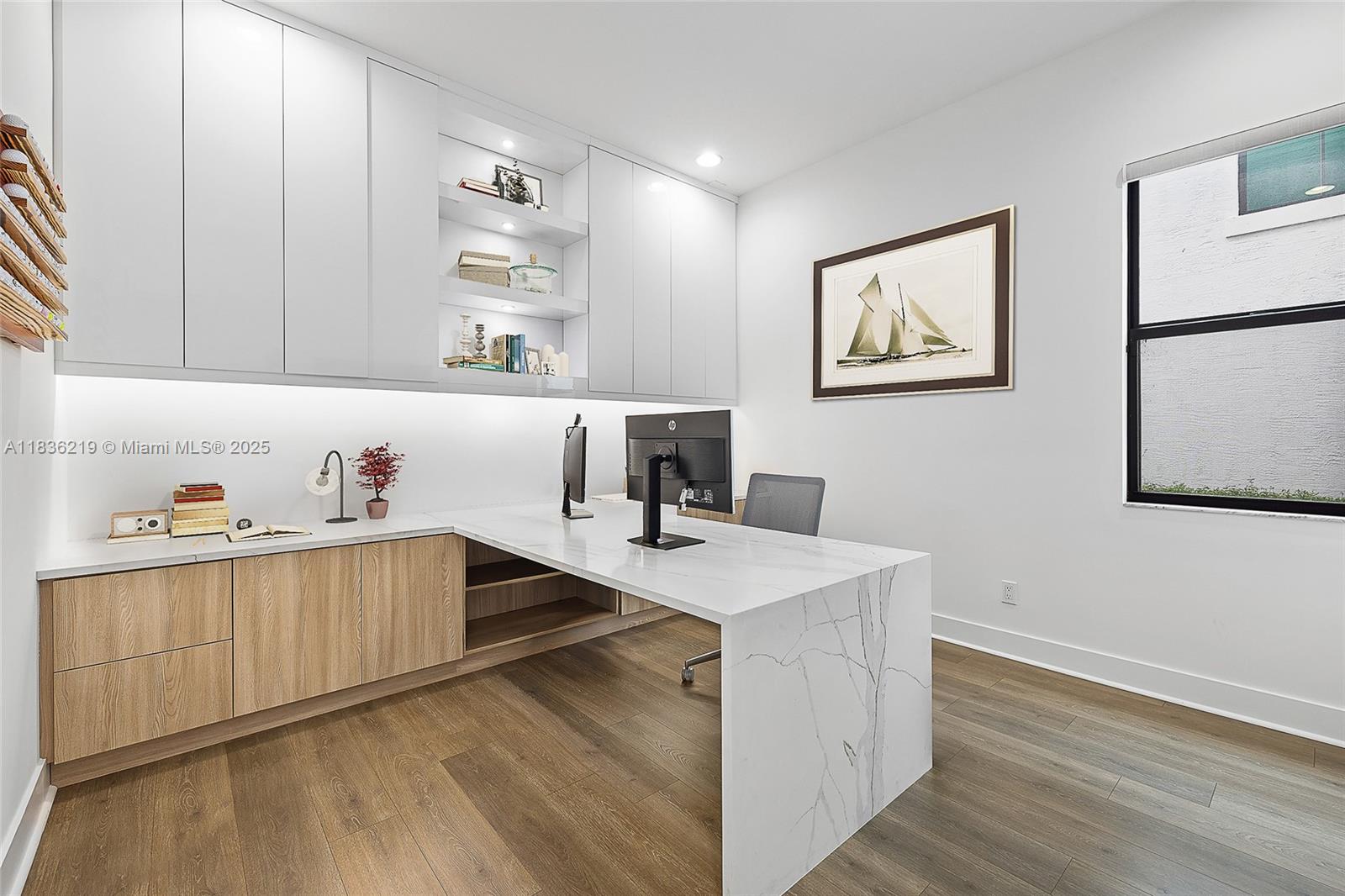 Modern sophistication meets effortless indoor-outdoor living. Vaulted ceilings & oversized windows with plenty of natural light. Custom kitchen with wood-paneled cabinetry & bar, large island, & Miele appliances including gas cooktop, double ovens, built-in coffee station & hidden fridge/freezer. The covered lanai, summer kitchen, pool/spa & sun shelf create a true outdoor oasis. Upstairs has 4 bedrooms & a loft, including a primary suite with 2 custom closets & a spa-style bath. All guest rooms are ensuite with custom closets. A glass-enclosed office completes the main level. Located on the largest lot for this model with space to add a fire pit, putting green & play area.24/7 security, resort-style pool, clubhouse, & fitness area. Moments from A rated schools, shopping, dining & beaches.