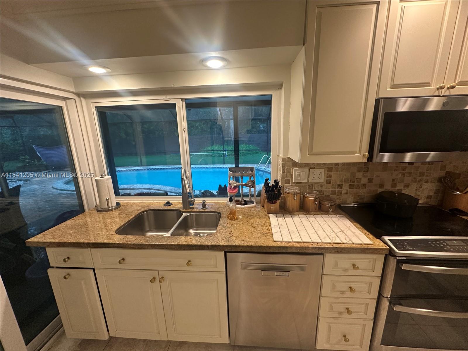 Beautiful home in Palmetto Bay by Old Cutler Road, can walk to the bay, Deering Estate, and restaurants. Active neighborhood (no mandatory HOA) has block parties and holiday events. Well-maintained house has new AC unit, updated electrical panel, custom front doors, plantation shutters, hurricane impact windows/doors, crown molding, ceramic floors, granite countertops, wood cabinets, stainless-steel appliances, and cabana bathrooms. Corner lot has new patio roof, pool with new screen enclosure, removable pool safety fence, sprinkler system, several mature oak trees, mango tree, and enclosed backyard. Brand-new EV charger. Layout has guestroom (with bathroom and walk-in closet) on one wing and three bedrooms (including master walk-in closet) and two bathrooms on the other.