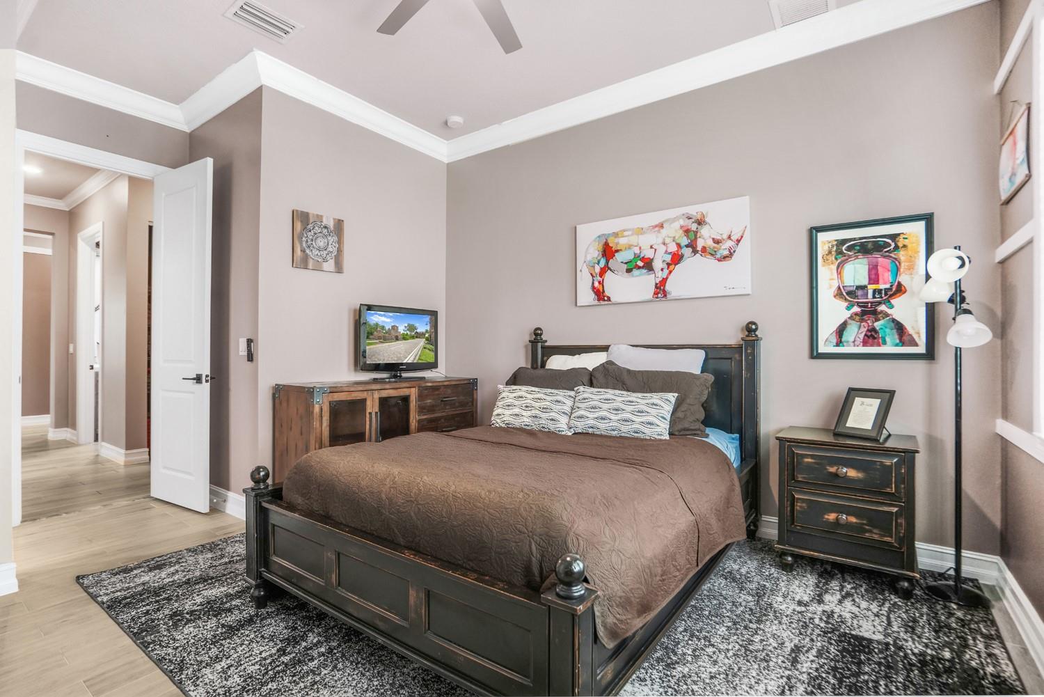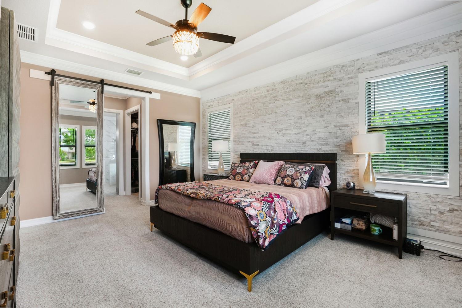 Beautifully upgraded home in desirable Palm Meadows! This meticulously maintained residence features a whole-house generator, gas stove, custom barn doors and cubbies in the laundry room, and a new kitchen island with granite, sink, faucet, and backsplash. All closets and pantry were redesigned by The Closet Factory. Interior has fresh paint, upgraded door and cabinet hardware, stylish wallpaper, and a rock accent wall in the bedroom. Bathrooms include new shower heads, barn-style glass doors, updated faucets, and a renovated guest bath. Enjoy a screened-in porch, new island lighting, ceiling fans, new washer/dryer, new AC unit, EV outlet in garage, and termite warranty. Move-in ready with thoughtful upgrades throughout!