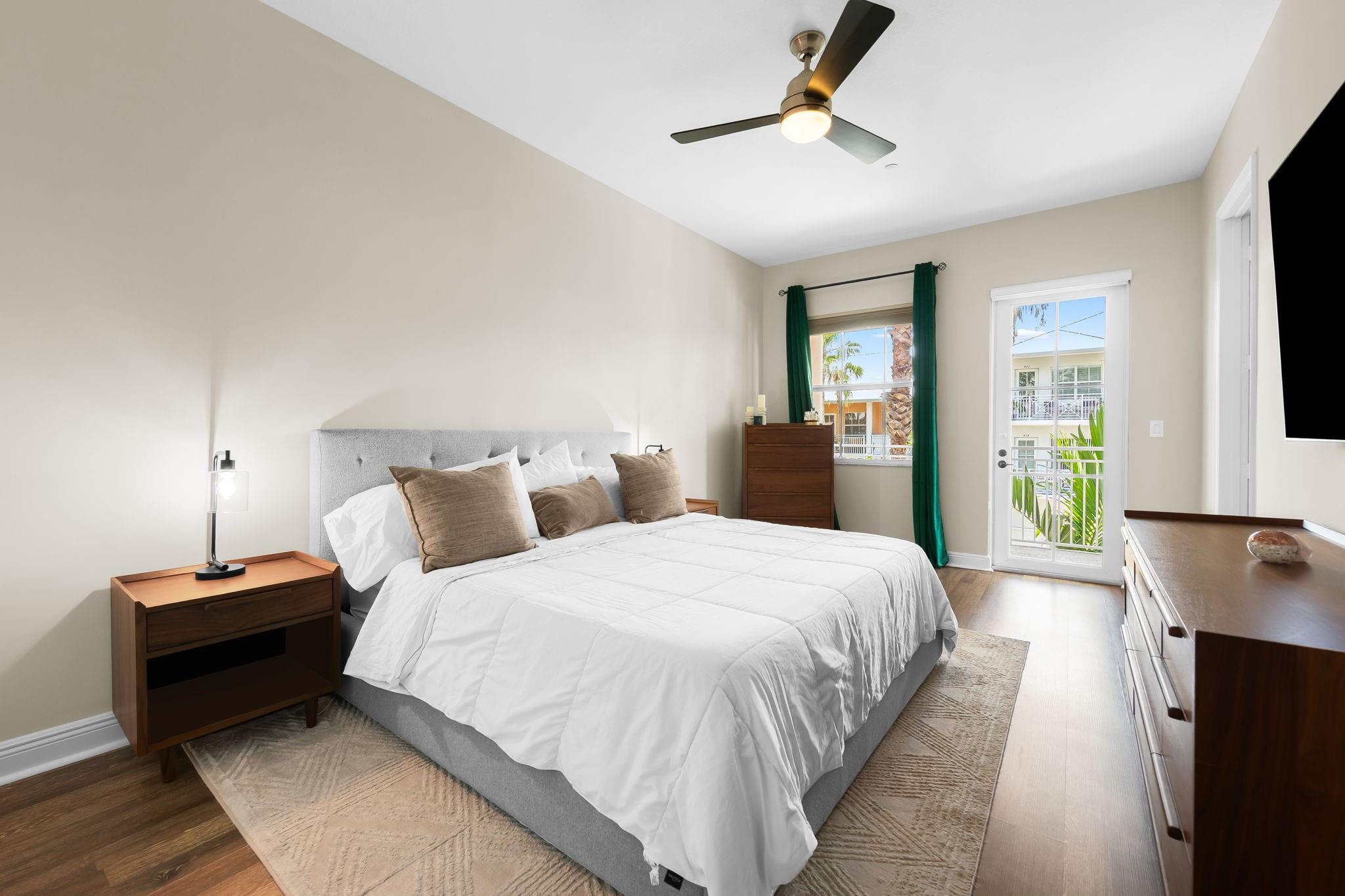 Welcome to modern elegance at 419 Olssen Avenue in Fort Lauderdale's Village of Sailboat Bend. This inviting 2-bedroom, 2.5-bath townhome spans 1,679 square feet of pure delight. Enjoy recently upgraded spaces with fresh paint, chic light fixtures, and a newer A/C and water heater. The revamped kitchen features stylish blue and white cabinets with quartz countertops, while the primary bathroom is fully remodeled. With sophistication throughout, from hardwood and tile floors to modern lighting, the home boasts high ceilings and recessed lighting. Savor the luxury of a double sink bathroom, spacious walk-in closet, and laundry room with a newer washer/dryer. The home includes TVs, featuring a 75-inch in the primary bedroom and a 65-inch in the guest room. Welcome to Fort Lauderdale!