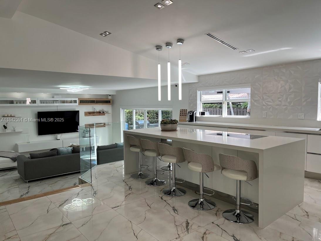 Modern open floor concept, completely remodeled. Glass and Brazilian wood staircase give this 5 bedrooms, 3 bath home an instant wow factor. Italian porcelain floors throughout, Italian marble floors in all bathrooms. LED lights in all kitchen cabinets. Master bedroom and bath created for comfort and relaxation on it's separate wing. Video surveillance cameras controlled directly from your phone. Patio with marble floors. 6 FT deep pool with safety gate in the must desired communit of Doral.