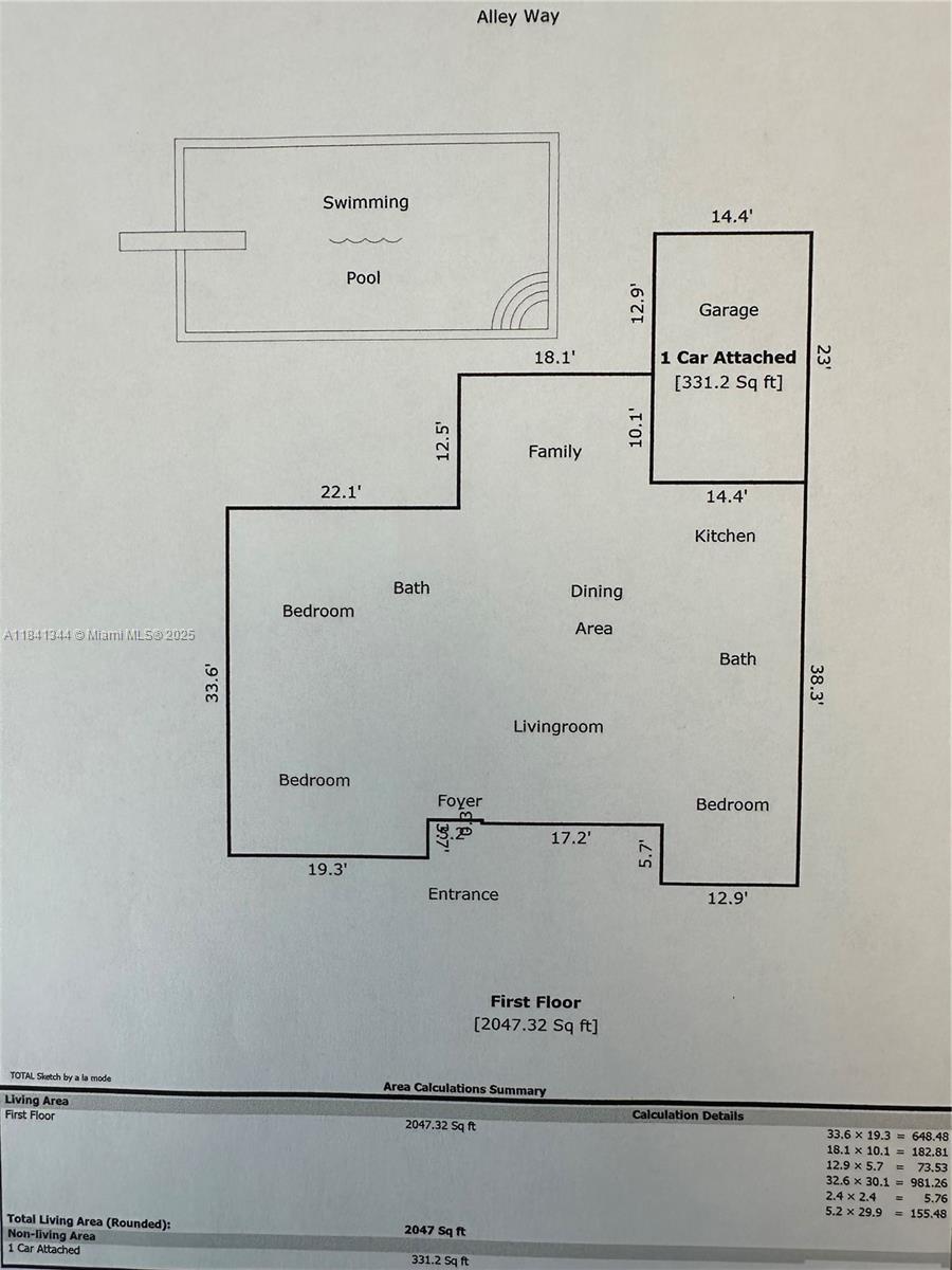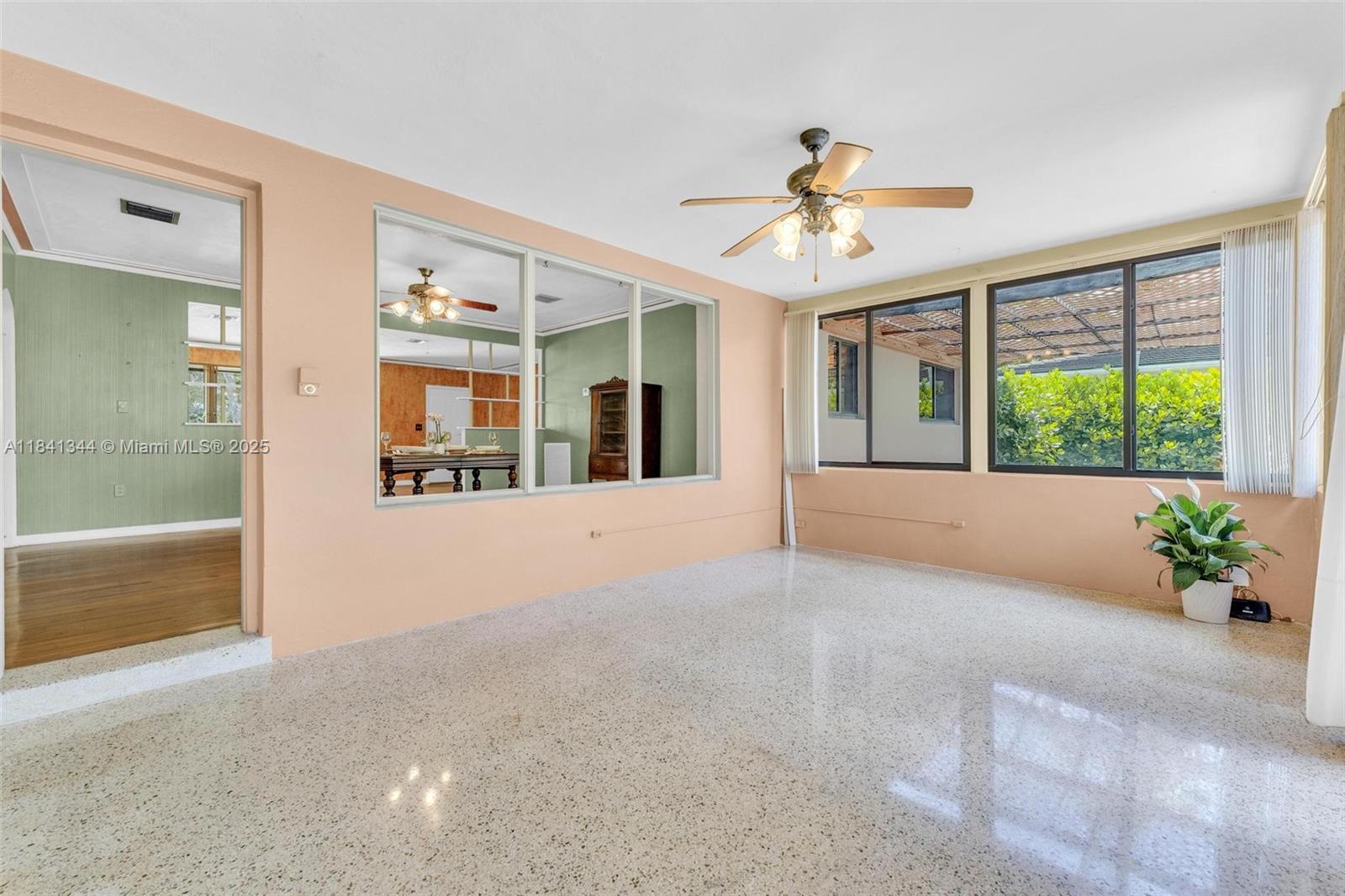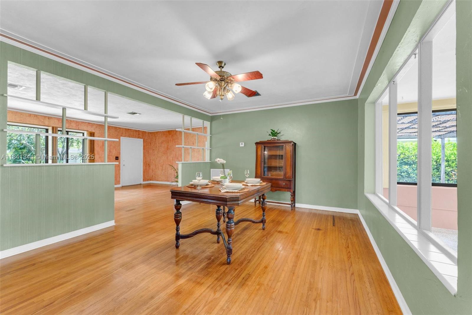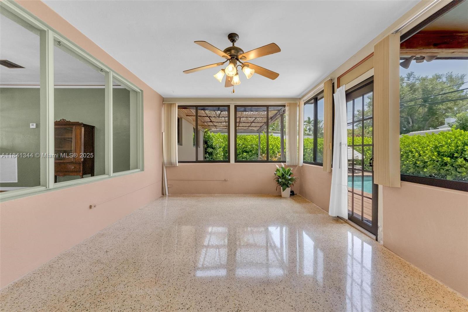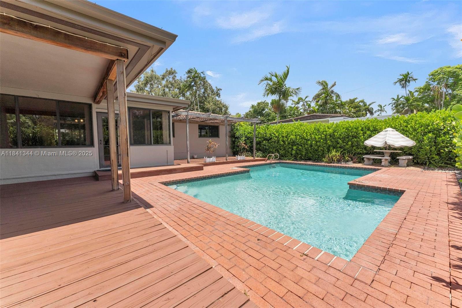 Amazing OPPORTUNITY in Miami Shores -East of Biscayne! Spacious layout is LARGER than tax records - 2,047 SF Living (See building sketch). This classic 3 bed/2 bath gem is nestled on a tree-lined street in one of the most desirable pockets. Lovingly cared for & cherished by the same family for decades, the split floor plan features original Dade Pine wood floors, impact windows, & a sun-drenched Florida room—perfect for relaxing or entertaining. Lounge by the sparkling POOL & covered deck, surrounded by lush landscaping. One-car garage with private alley access offers flexibility for parking, storage, or expansion. Great natural light & a warm, welcoming vibe. Just a short stroll to wide-open Biscayne Bay & minutes to top-rated schools, restaurants, beaches. Own a neighborhood classic!
