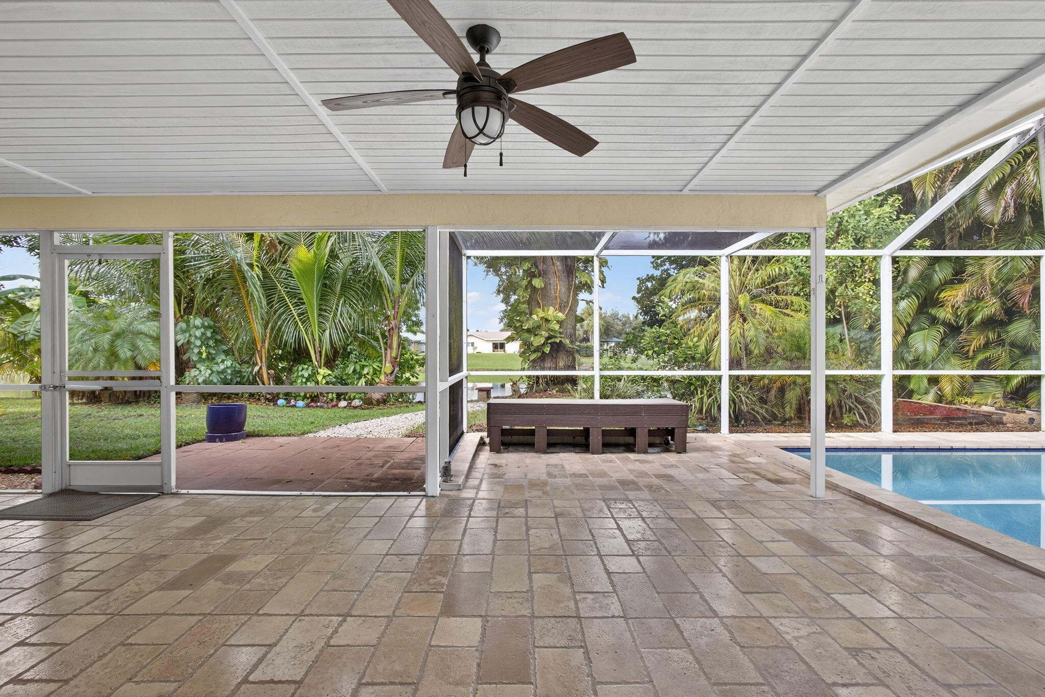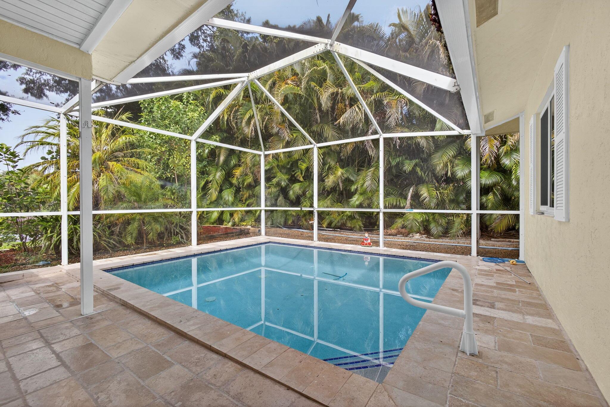 LOWEST PRICED 3 BEDS, 2 BATH, WITH POOL, WATERFRONT & 2 CAR GARAGE IN 33414 WELLINGTON!Situated on on a tropical mango and banana fruit treed lot, with tranquil views of a wide navigable canal for your boating and recreation fun. Enjoy the screen enclosed, travertine pavered patio and lanai, while relaxing in the heated, salt filtrated pool. The storm efficient home has a sturdy metal roof with solar panels for off the grid electic energy. Storm impact windows are plus for safety, security and energy efficiency.Appliance upgrades feature 2024 installation of a new kitchen stove, water heater, new pool and irrigation pumps and garage door opener and springs.Enjoy the autonomy and the financial savings of NO HOA. See it now at this new value price.