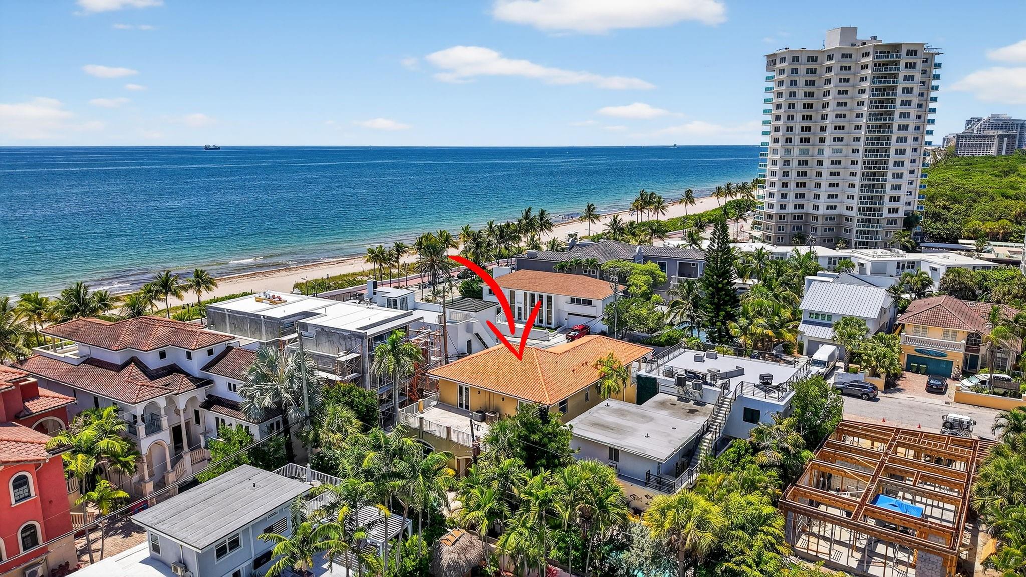 Live the Beach Life – Just 200 Steps from the Sand! This 2-story coastal masterpiece offers 12' ceilings, hurricane-impact windows/doors, marble floors, open layout, custom closets, and a loft with French doors to an ocean-view terrace. Upstairs features Brazilian Cherry floors, 3 ensuite bedrooms—each with ocean-view terrace access. The spacious primary suite includes 2 walk-in closets, a custom shower, Jacuzzi tub, and bidet. Additional features: 2 A/C units, 2 Titan water heaters, and a white paver driveway for easy beachside parking. Walk to Birch State Park, soak in sunrises, and enjoy the ultimate coastal lifestyle. Prime Fort Lauderdale location—perfect as a vacation rental, investment property, or forever beach home!