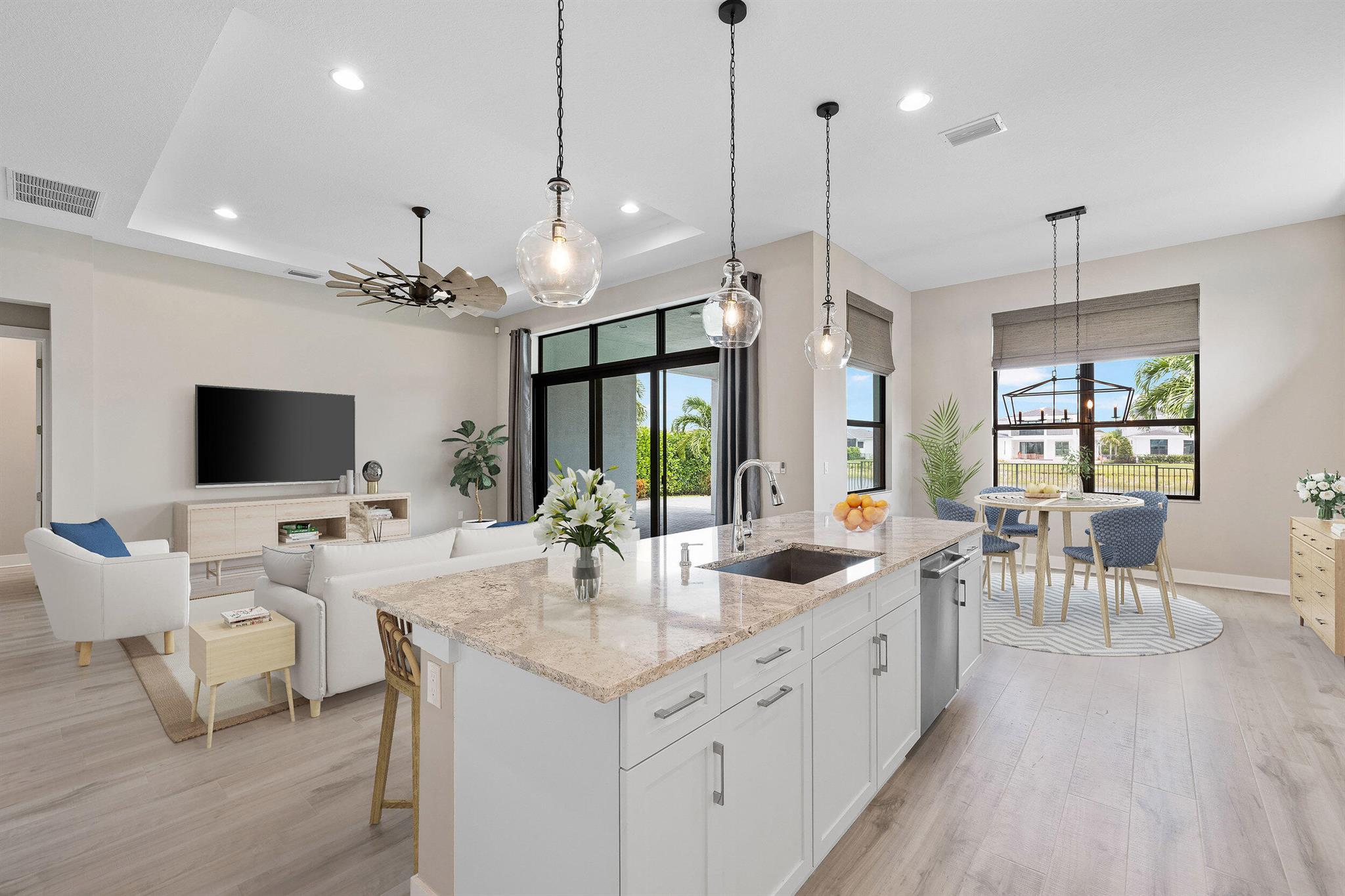 Experience lakefront living! Expansive 5BR/5BA residence in the sought-after gated community lives like a country club wIth 24/7 security gate, resort style pool, clubhouse, fitness center & more. Perfectly positioned on a premium lot/street, this 2022 build offers a spacious layout tailored with a chef's kitchen featuring sleek upgraded cabinetry, high-end monogram/cafe appliances, 2 dining aeas & a large great room allowing for hours of entertainment. The first floor has 2 bedrooms including an owners primary suite with serene views of the private saltwater pool/spa & lake. The expansive great room is ideal for both relaxing & entertaining. Upstairs, you'll find 3 additonal en-suite bedrooms & a loft allowing for an open-concept living area.Live in the heart of Northern Palm Beach.