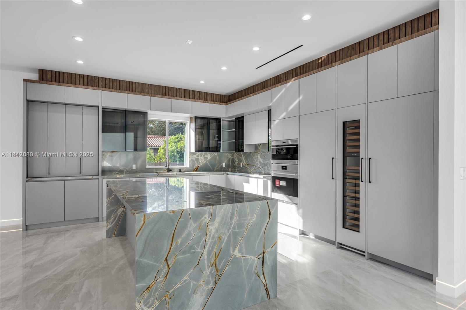 Modern luxury redefined in this stunning 8,067 sqft single-story estate on 1.25 lush acres. Step through a 12-ft pivot glass door into airy, light-filled spaces with 12–14 ft ceilings and sleek, minimalist design. The gourmet kitchen wows with Sub-Zero appliances, an oversized island, and a glass-encased 48-bottle wine display. Walls of glass open to a resort-style oasis featuring a 70-ft knife-edge pool, 10x14 spa, summer kitchen, fire pit lounge, and half basketball court. The primary suite is a spa-like retreat with floating tub, dual vanities, and a massive walk-in closet. Impact glass, 3-car garage, and flawless indoor-outdoor flow complete this masterpiece.