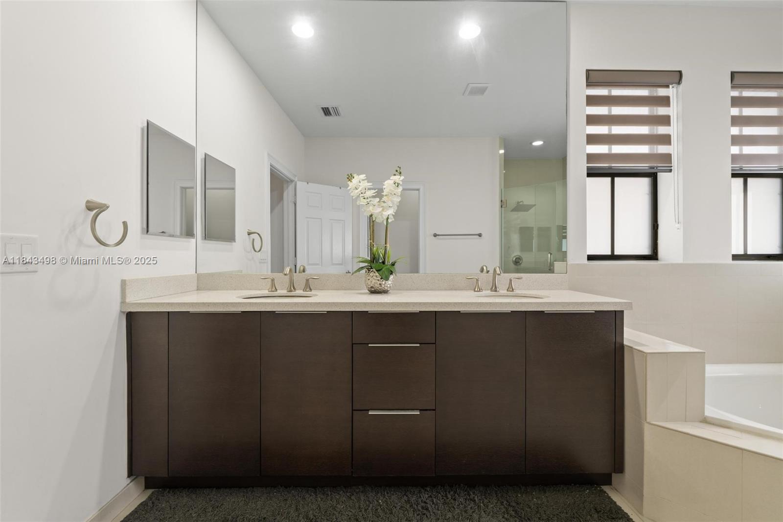 Exclusive and modern luxury home with private pool & spa with a heating system in a gated community of only 64 single-family homes with security systems.Very quiet and family-friendly, very close to the resort-style clubhouse, where you can enjoy numerous activities for children, teens, and adults. This beautiful home features a covered two-car garage and outdoor parking for + cars, a private patio overlooking the ideal nature reserve, a garden irrigation system, and a whole-house water purification system. One bedroom on the ground floor with a full bathroom. Excellent location, next to top-rated schools, banks, supermarkets, restaurants, academies, a nail and hair salon, and recreational parks.