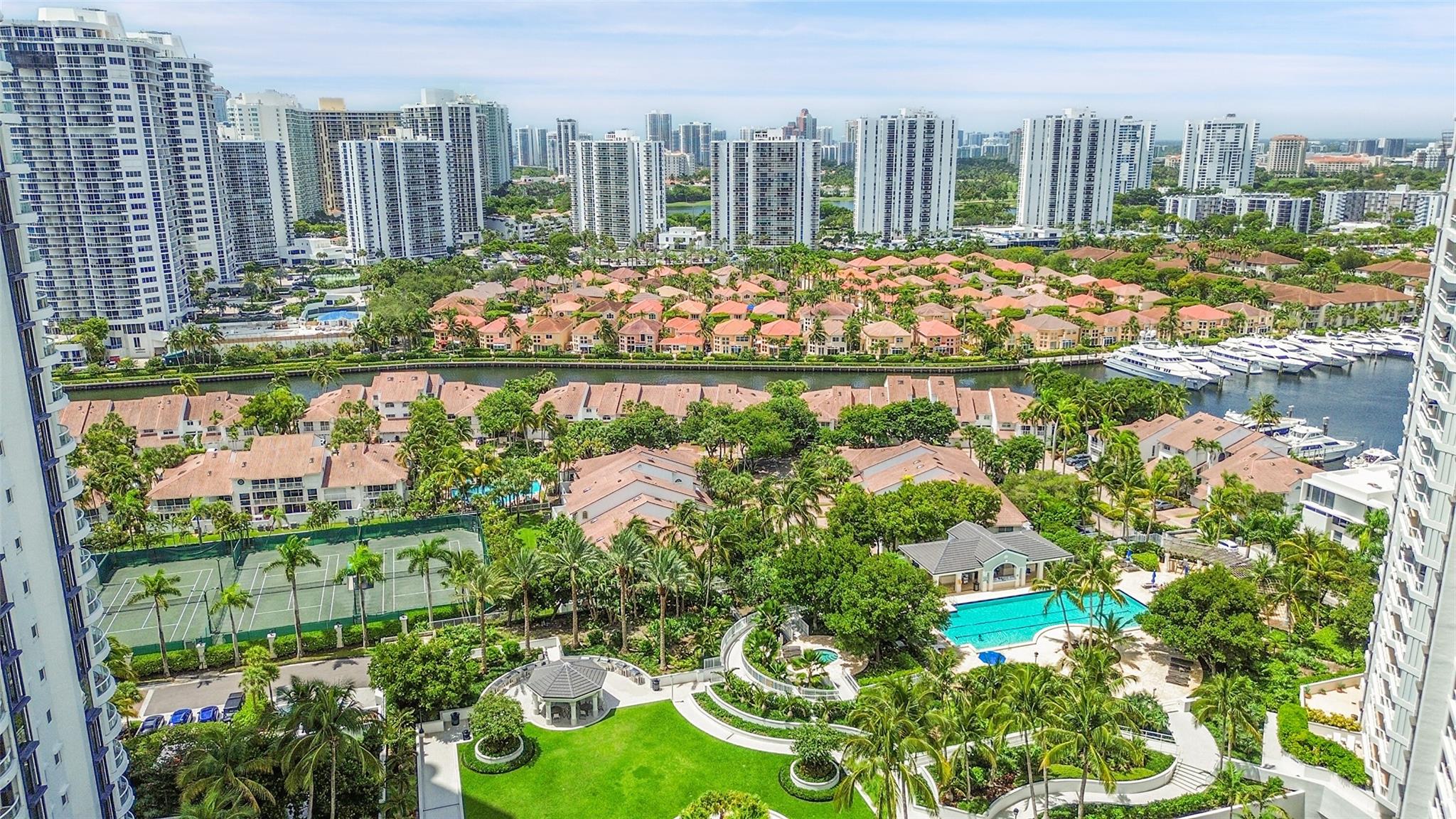 Don’t miss the chance to own this beautifully maintained townhome just steps from the Waterways Marina and Intracoastal. This spacious 3 bed, 2.5 bath residence offers nearly 1,900 sq ft of living space featuring vaulted ceilings, an indoor laundry room w/sink and 1-car garage with 2 outdoor parking spaces. A sub-zero fridge, crown molding, impact doors & windows, fresh interior paint, ample storage w/ closet systems and more! What truly sets this home apart is the exceptional water view enjoyed from your private patio—perfect for relaxing or entertaining. Situated in a boutique community of only 79 homes, residents enjoy 24-hour manned security, a saltwater community pool & proximity to premier shopping, dining, top-rated schools & houses of worship. A true gem in the heart of Aventura!