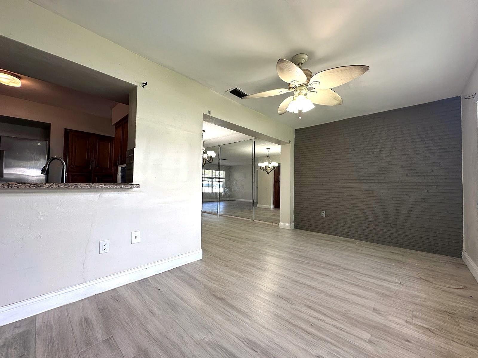Amazing single house in the area of Miramar area with a 3 bedroom and 2 bath that can convert to 4 bedrooms. Split floor design with master bedroom on one side and two other bedrooms on the other side. Beautiful brand-new kitchen with electric stove and microwave. Kitchen can hold dining room. There is a Florida room where people can relax and enjoy a huge garden view in the backyard, including several trees likes mangos and other native plants. In the backyard, there is a nice storage room (10X10) that is well secured. The front has gorgeous landscaping with a variety of trees.