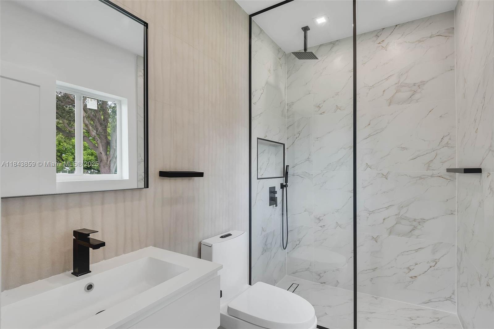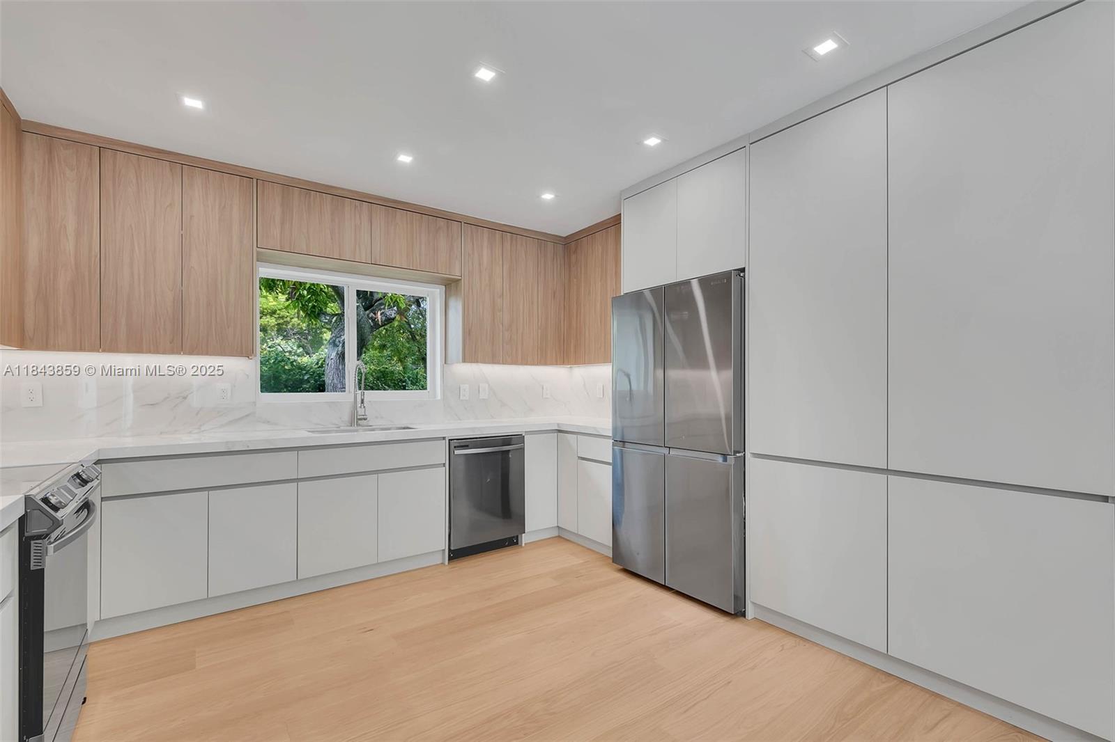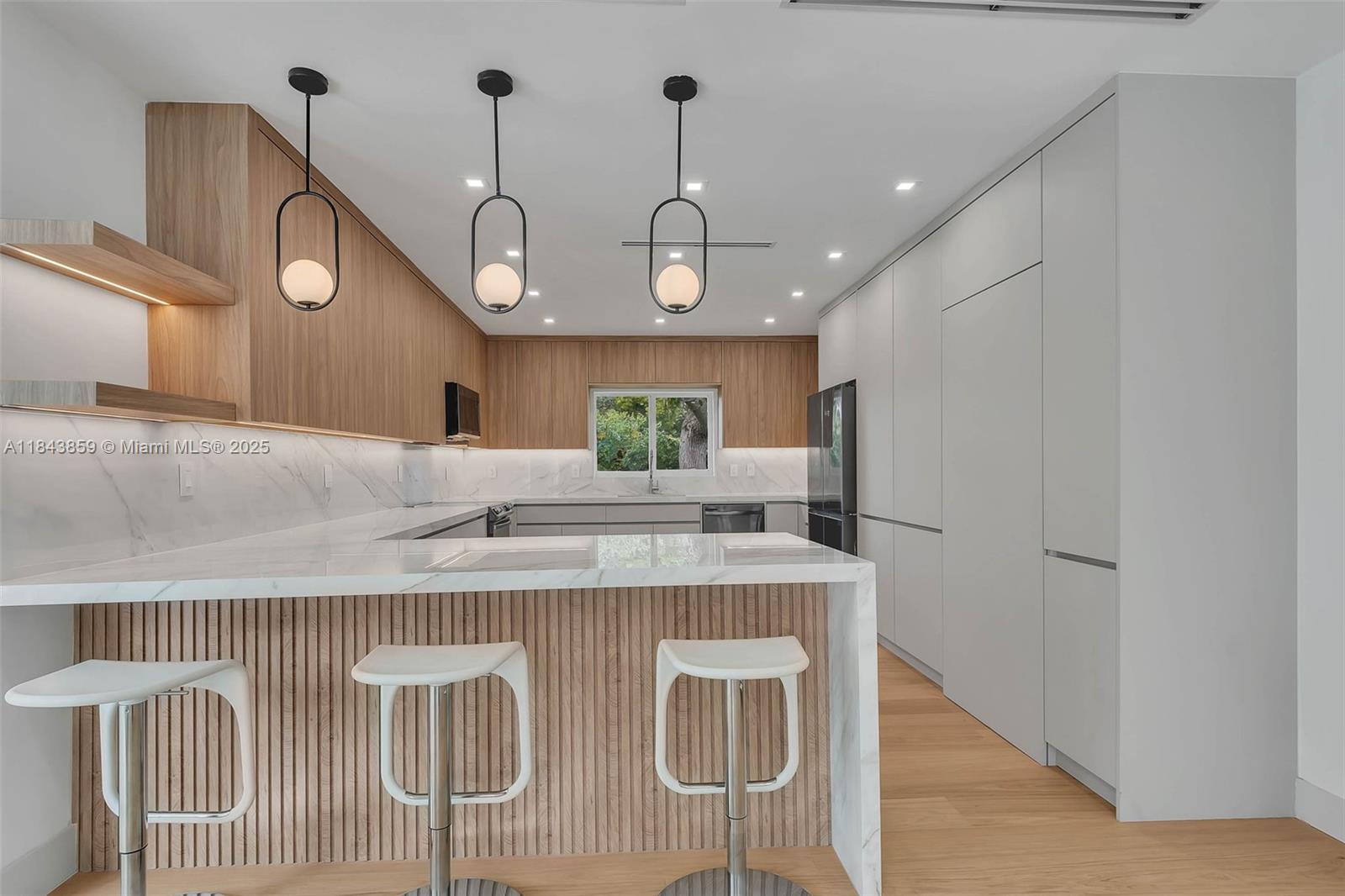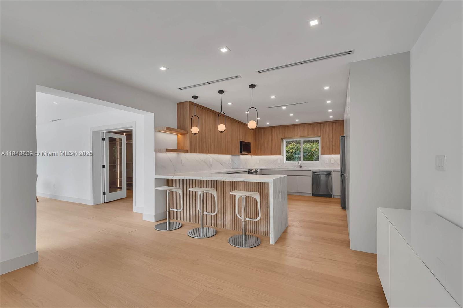 Step inside this exceptional Miami Shores residence, where style meets comfort in a true prime location. Offering 2467 sqft of living area, 4 bed / 3.5 bath, 2 car garage plus a gorgeous and meticulously designed pool area. Showcasing custom/high-quality carpentry work in all closets and kitchen. Amazing pool views all around the house. Soaring vaulted 9.5 ft ceilings and stunning real engineered hardwood floors throughout. The home features all-new plumbing, electrical systems, A/C ducts, brand new 2-zone AC system, high impact windows and doors. Every square foot of this home has been masterfully utilized, offering a well-balanced layout that delivers comfort and functionality. Designed for seamless indoor/outdoor living, the home is set on a 13614 sqft huge corner lot. Near A+ schools.