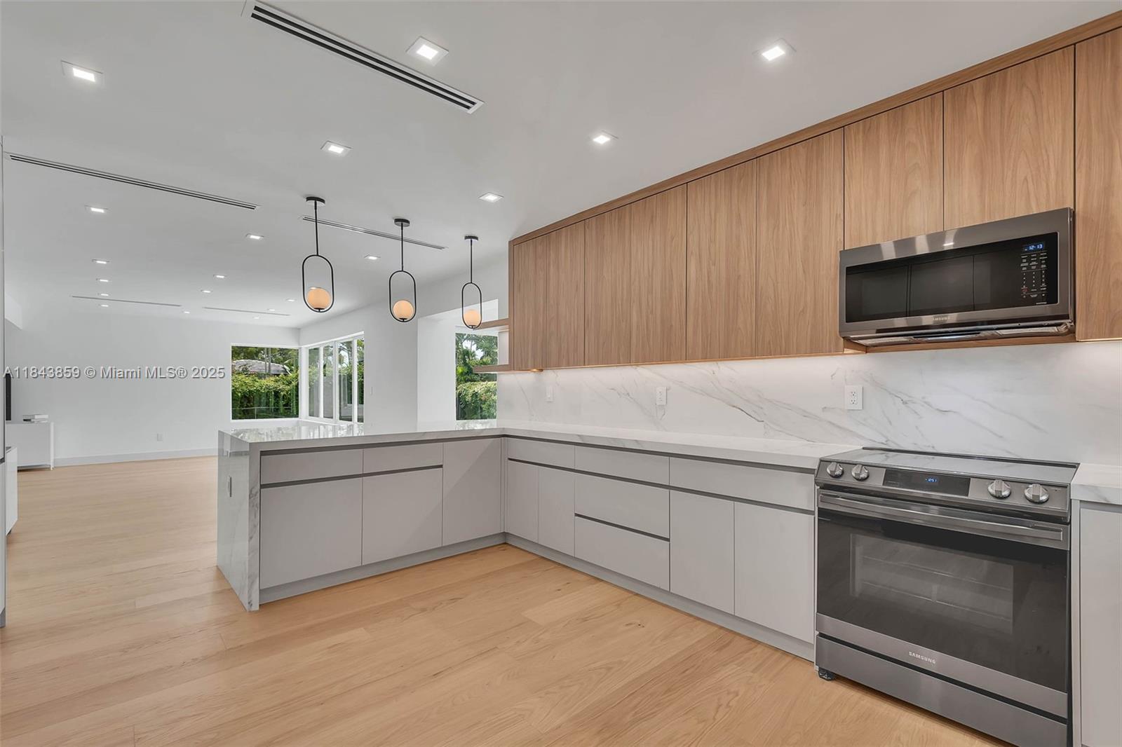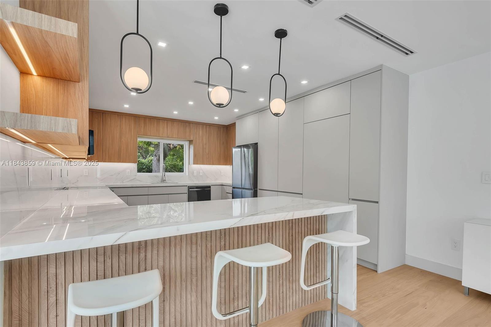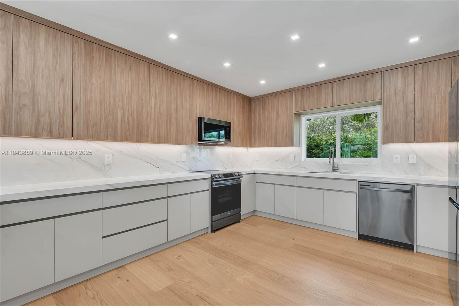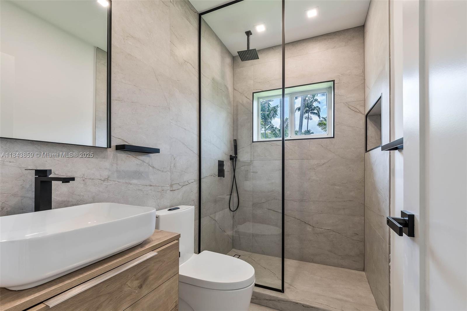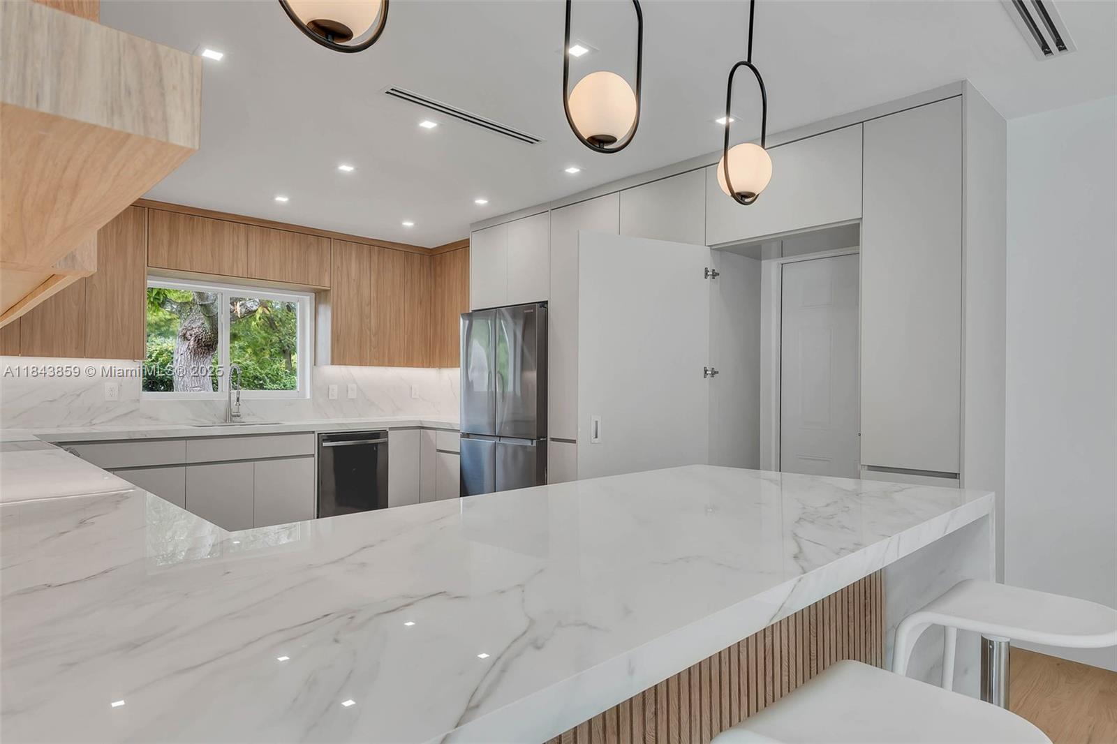 Step inside this exceptional Miami Shores residence, where style meets comfort in a true prime location. Offering 2467 sqft of living area, 4 bed / 3.5 bath, 2 car garage plus a gorgeous and meticulously designed pool area. Showcasing custom/high-quality carpentry work in all closets and kitchen. Amazing pool views all around the house. Soaring vaulted 9.5 ft ceilings and stunning real engineered hardwood floors throughout. The home features all-new plumbing, electrical systems, A/C ducts, brand new 2-zone AC system, high impact windows and doors. Every square foot of this home has been masterfully utilized, offering a well-balanced layout that delivers comfort and functionality. Designed for seamless indoor/outdoor living, the home is set on a 13614 sqft huge corner lot. Near A+ schools.