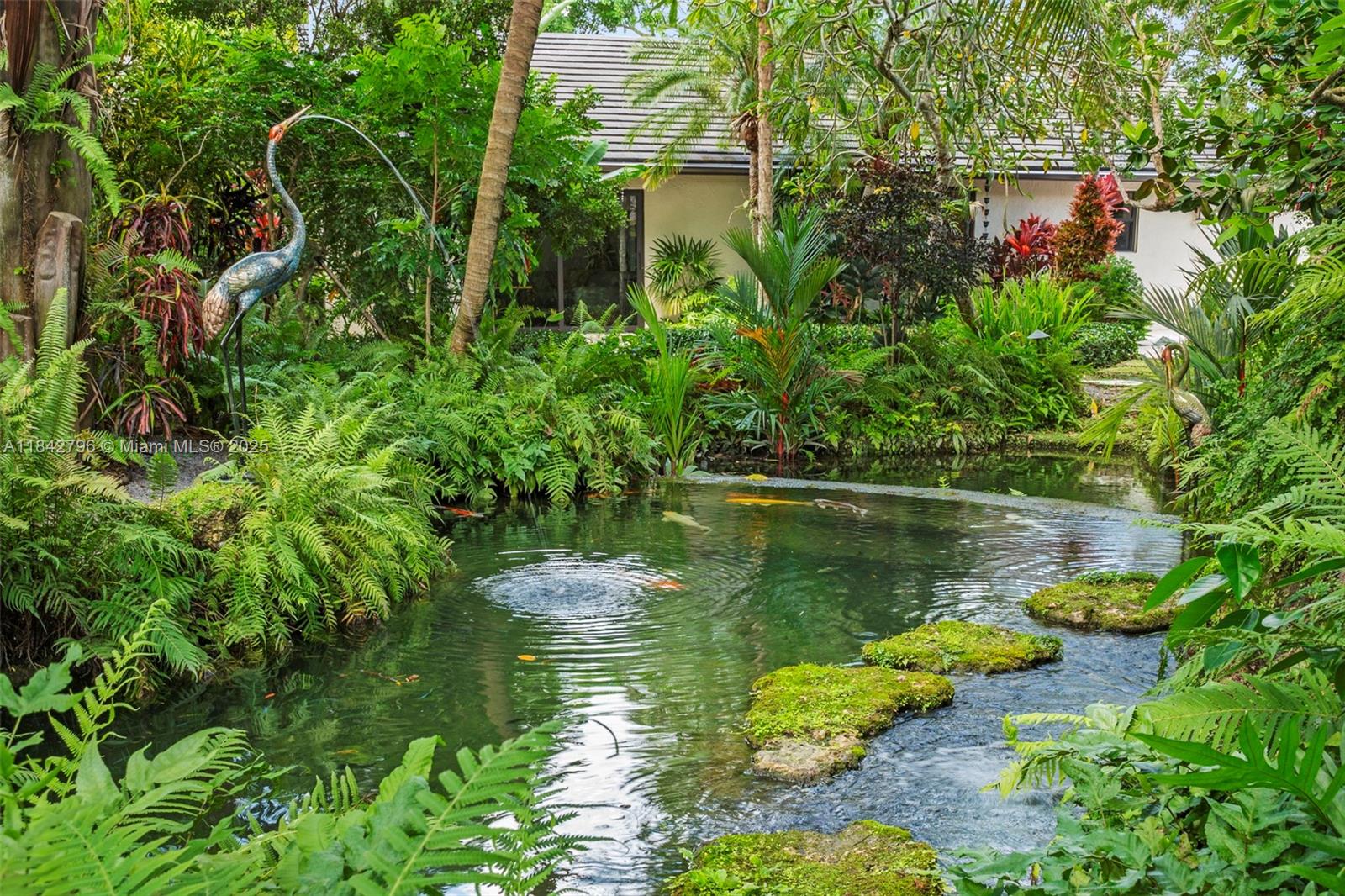 Lush Redlands Oasis. Welcome to a home where privacy, peace & nature reign supreme. Nestled on over a 1/2 acre of thriving tropical beauty w/a stunning waterfall grotto, koi pond & butterfly garden as its centerpiece, this residence is a study in beauty, space & tranquility. Passing thru the grand entrance, you’re greeted by a striking rock garden atrium. Immediately you feel it - this is a special place. A Grand Living Wing comprising a flow-thru family rm, dining rm & showpiece kitchen w/Bosch appliances, granite counters & waterfall island set the scene for a life of indulgent comfort enhanced by earth tones, rich wood flrs, high sloped ceilings, interesting design details, glass drs w/stunning nature views, and a breezeway patio connecting garden, pool & Guest House. Fenced & gated.