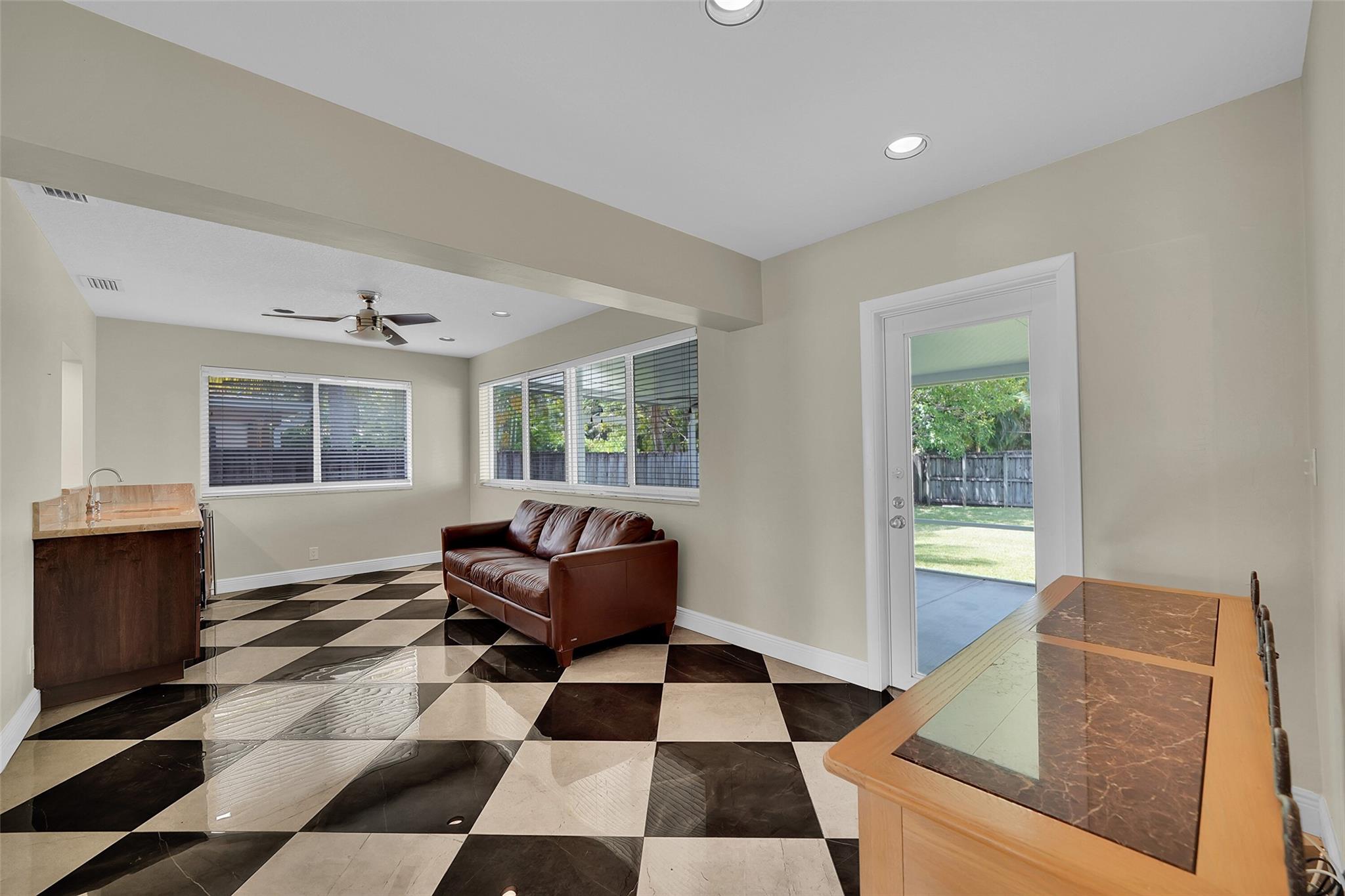 Hollywood Lakes home just steps to Southlake, total top to bottom renovation in 2014, including barrel tile roof. Over 2100 sq ft, 2 bed, 2 bath, family room with wet bar, bonus room or office, features marble counters in kitchen, gorgeous 24” dark brown & beige porcelain tile floors throughout, crown baseboards, knock down finish on ceilings, beautiful marble bathrooms, master Jacuzzi bath with skylight, 2023 cent A/C, screened patio & shed. Great location near Hollywood Beach & Broadwalk, Downtown Hollywood, shopping, restaurants, Gulfstream Park, highways & Airport.