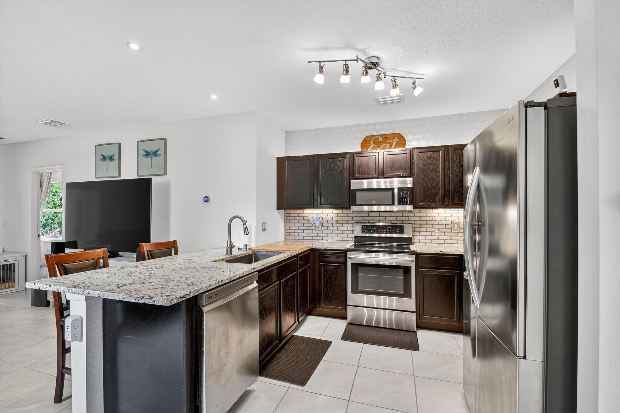Home Sweet Home! This beautiful home is light, bright and perfectly appointed with a kitchen that left no detail unturned! From the countertops to the full height backsplash to the Espresso cabinets and stainless steel appliances, this space makes cooking exciting! The Master Retreat is spacious with upgrades to your ensuite bath and THE CLOSET... custom and would make anyone envious! Enjoy coffee or dinner on your screened, covered lanai. Your new home features 3 bedrooms, 2 baths and a 2 car garage. Also includes the NEST thermostat, a ceramic oven and two hard wired ring cameras. Pulling up to your inviting new home after a long day will put a smile on your face!