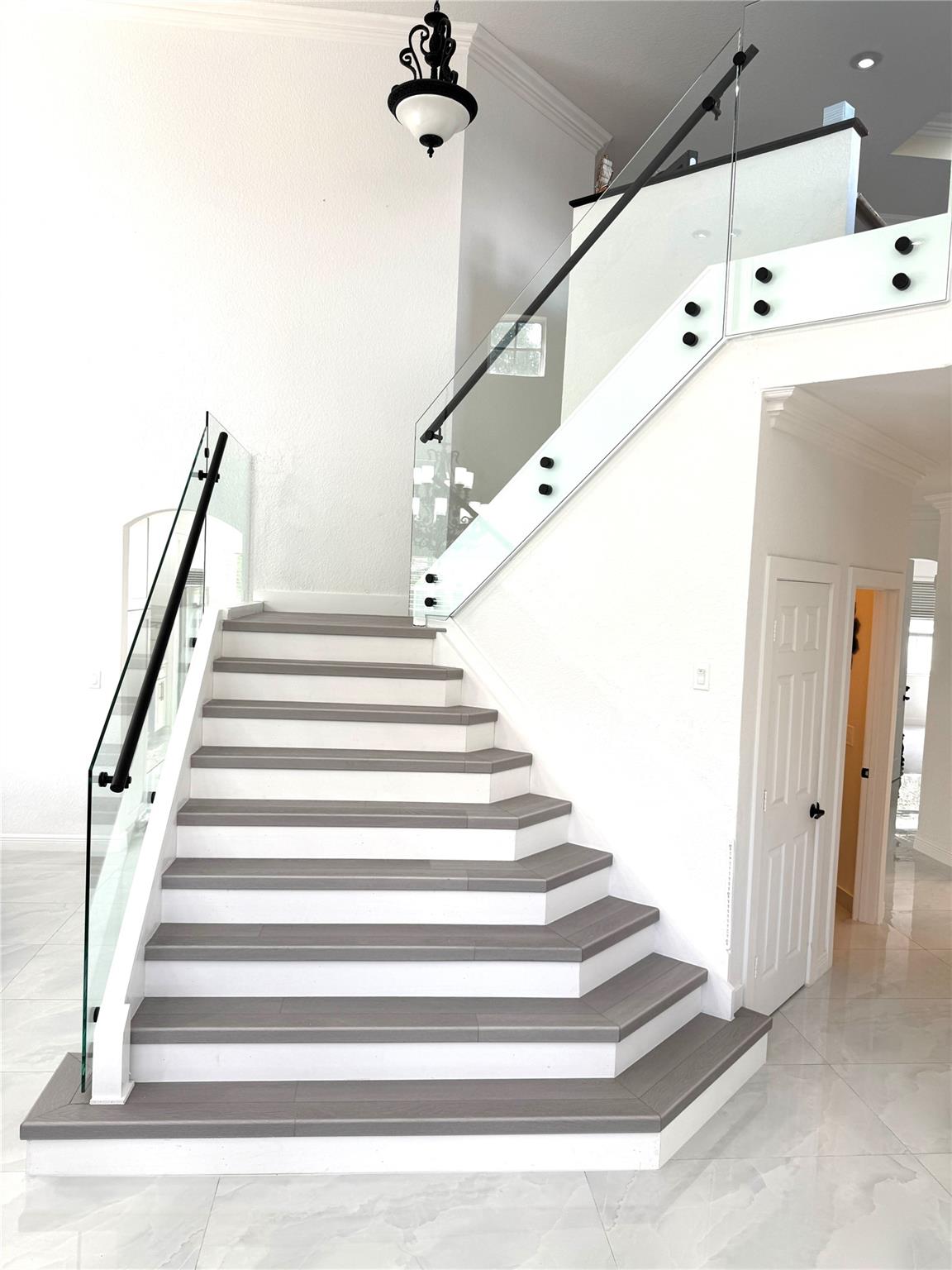 Welcome to the Kingston Plus Model Home—4BD/3.5BA with a 3-car garage & circular driveway in a gated, resort-style community. This beautifully maintained home has been freshly painted inside and out. It features hurricane-impact windows, sleek 2x4 porcelain tile on the first floor, and luxury vinyl upstairs. Dual staircases lead to a 500+ sq ft loft—perfect for a playroom, home office, or 5th bedroom. The gourmet kitchen boasts high-end finishes, brand-new appliances, and two full-size refrigerators(one in the kitchen, and one in the garage). Other highlights include security cameras, smart locks, electric vehicle charging station, upgraded garage door openers, a custom iron front door, and two new Carrier A/C units.