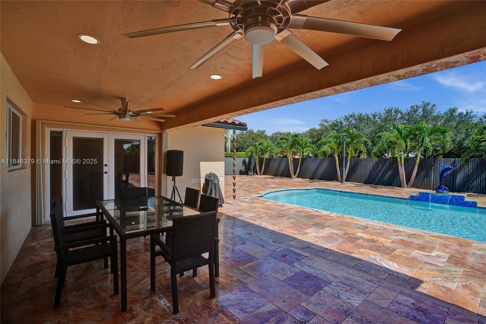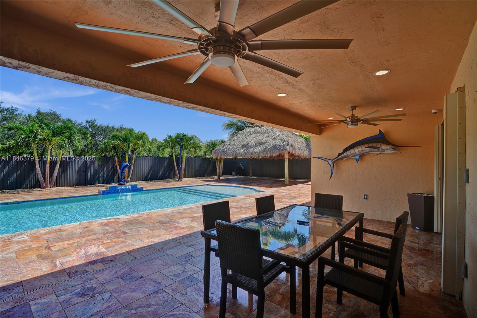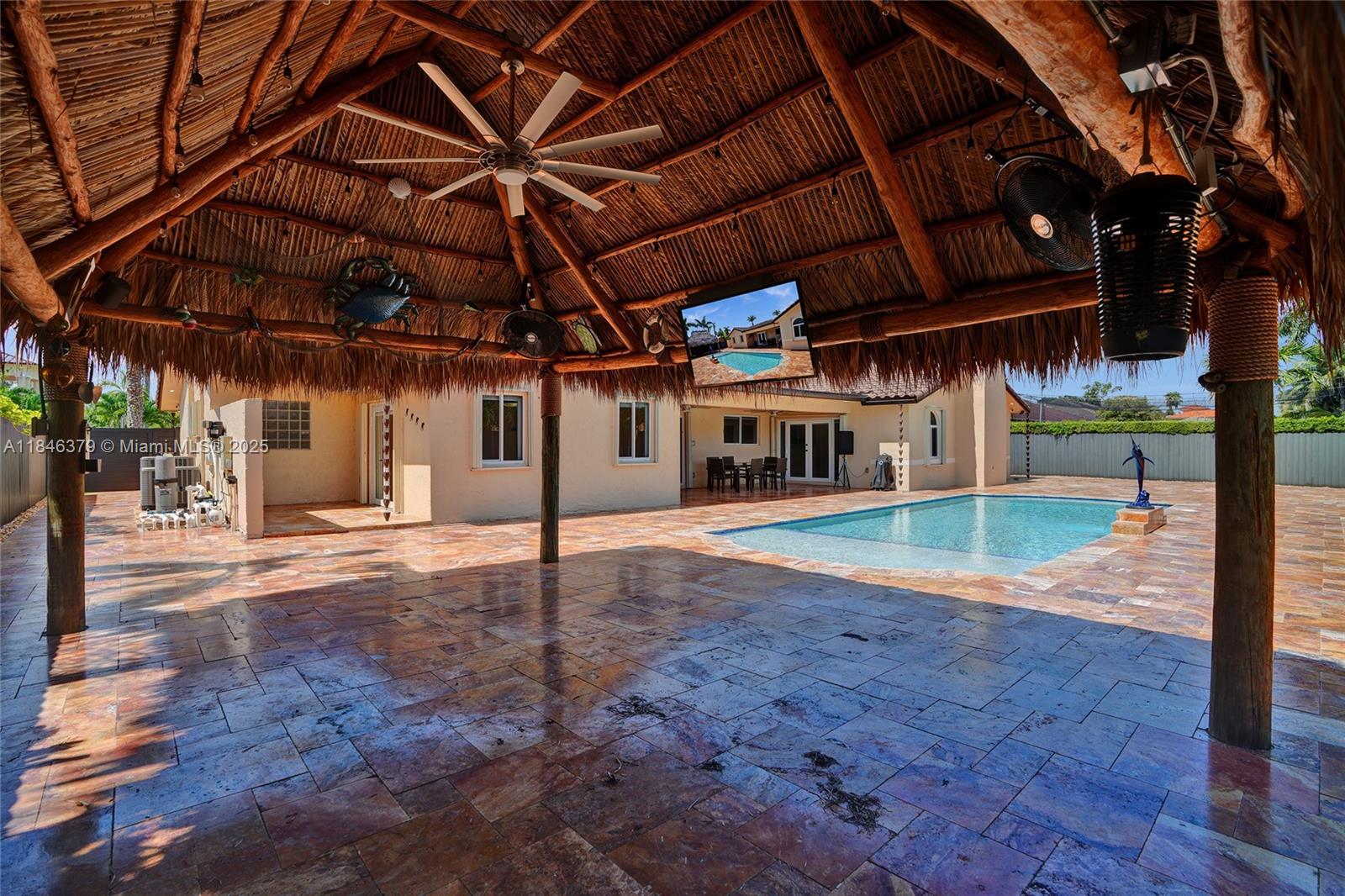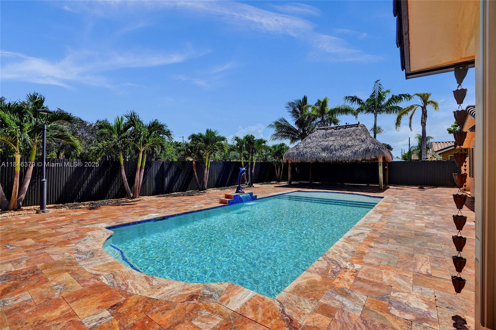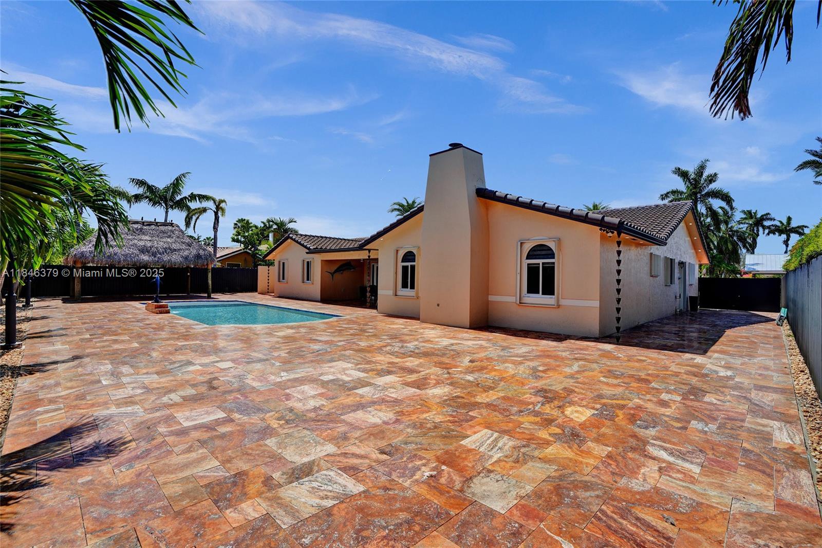 You have found the place you will call home in this 4/3 single family home perfect for entertaining family & friends at BBQs & holidays in the large size backyard w/ a covered terrace plus a tiki hut equipped w/ surround sound, TV, fans & adjacent to the saltwater pool for those hot summer days. Own a jet ski or small boat? There is room for them as well. The property also features accordion shutters, approx. 3 yr. old roof w/ 10 yr. warranty, two A/C units approx. 4 yrs. old, tankless water heater, water softener/filter system, porcelain flooring throughout, wood kitchen cabinets, stainless steel appliances, circular driveway w/ recently installed pavers that accommodates several vehicles, camara system included in the sale & so much more. See it ... love it ... make it your own!